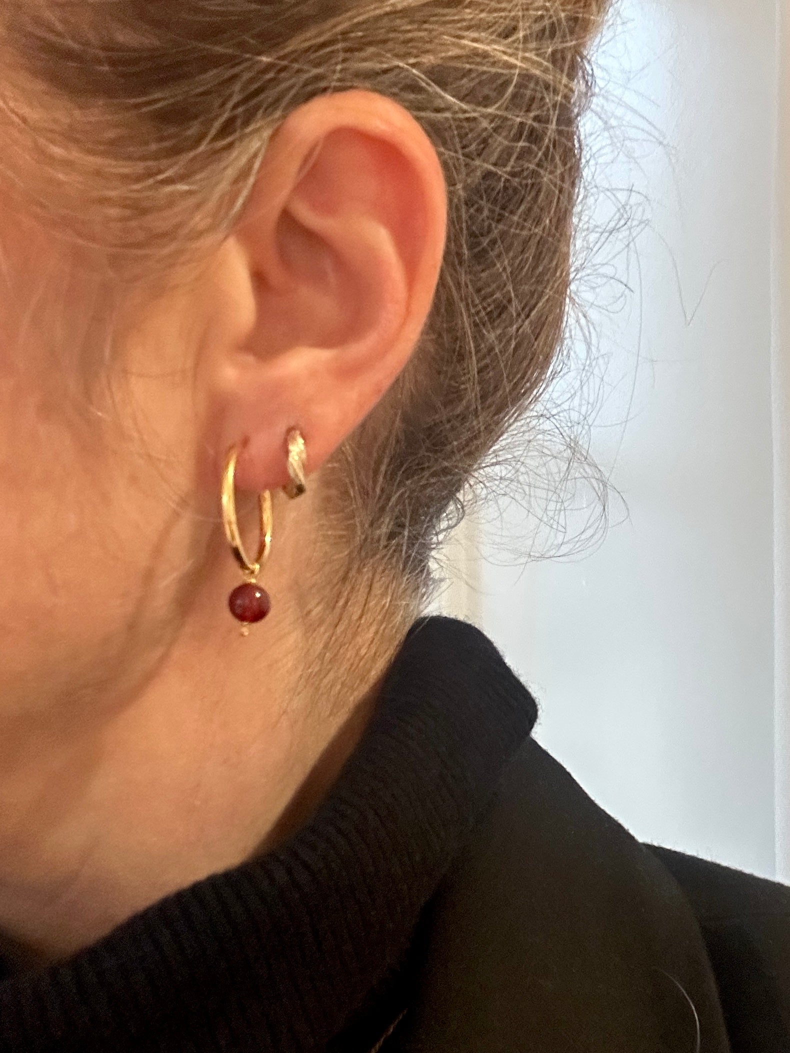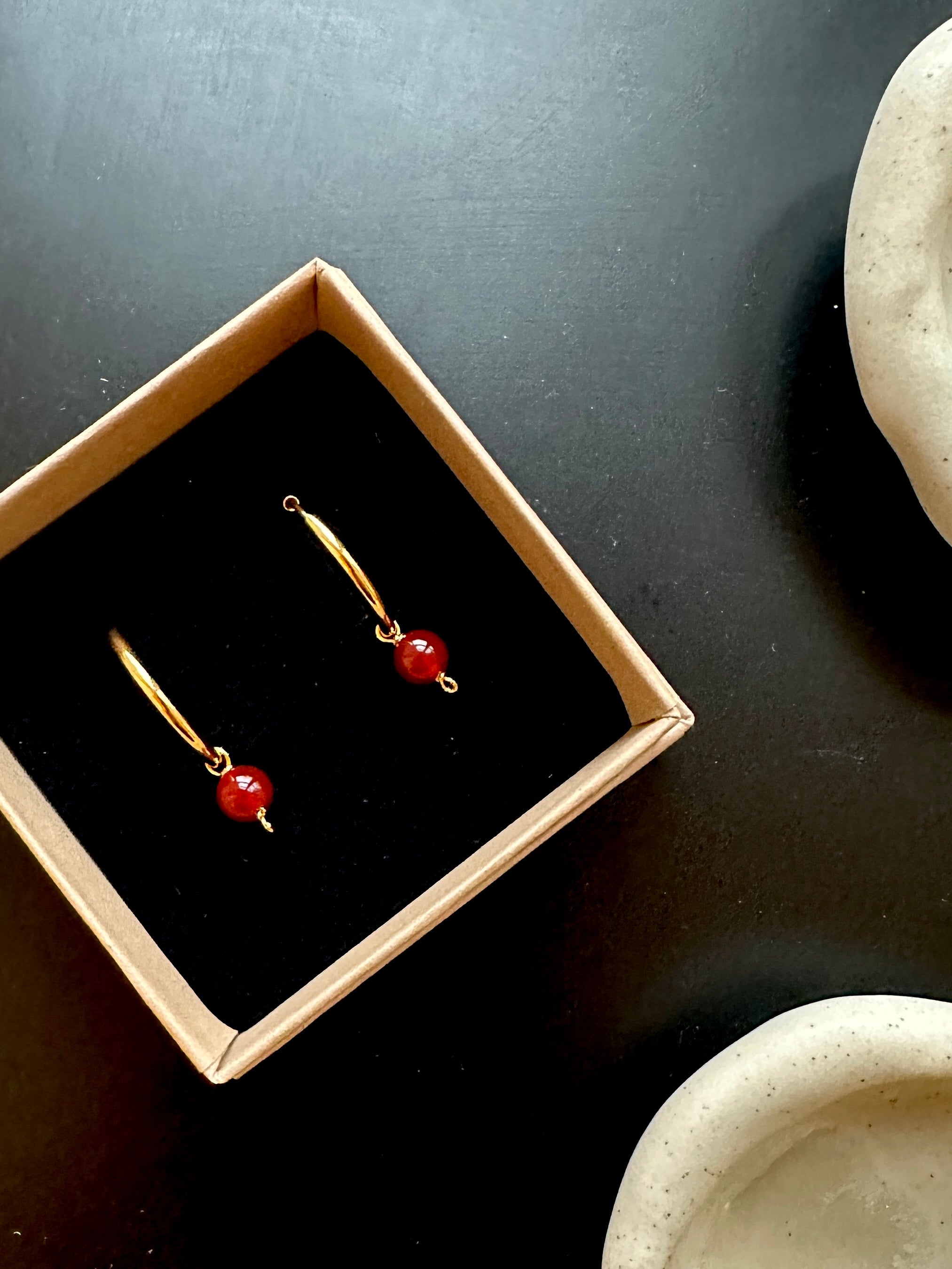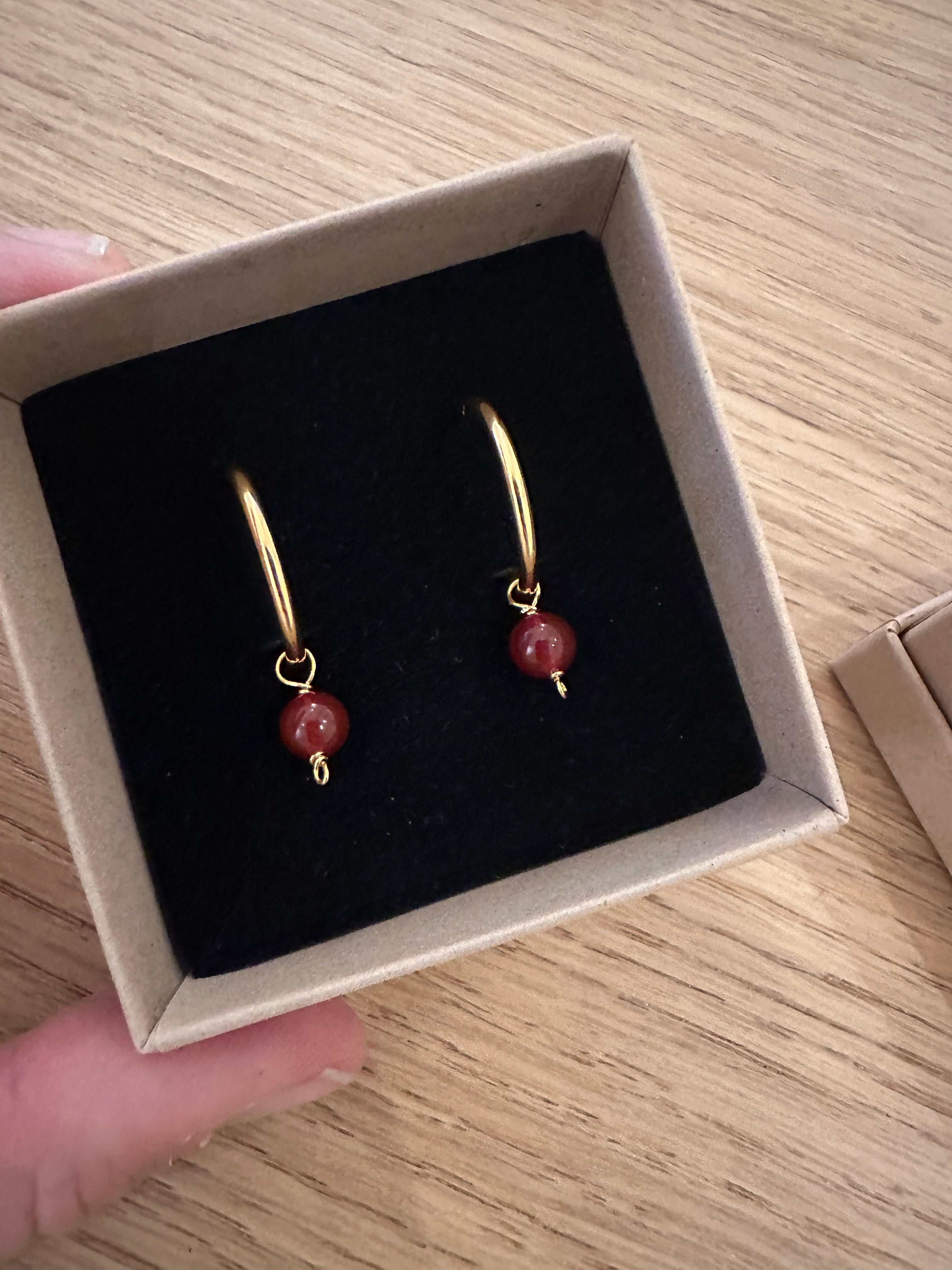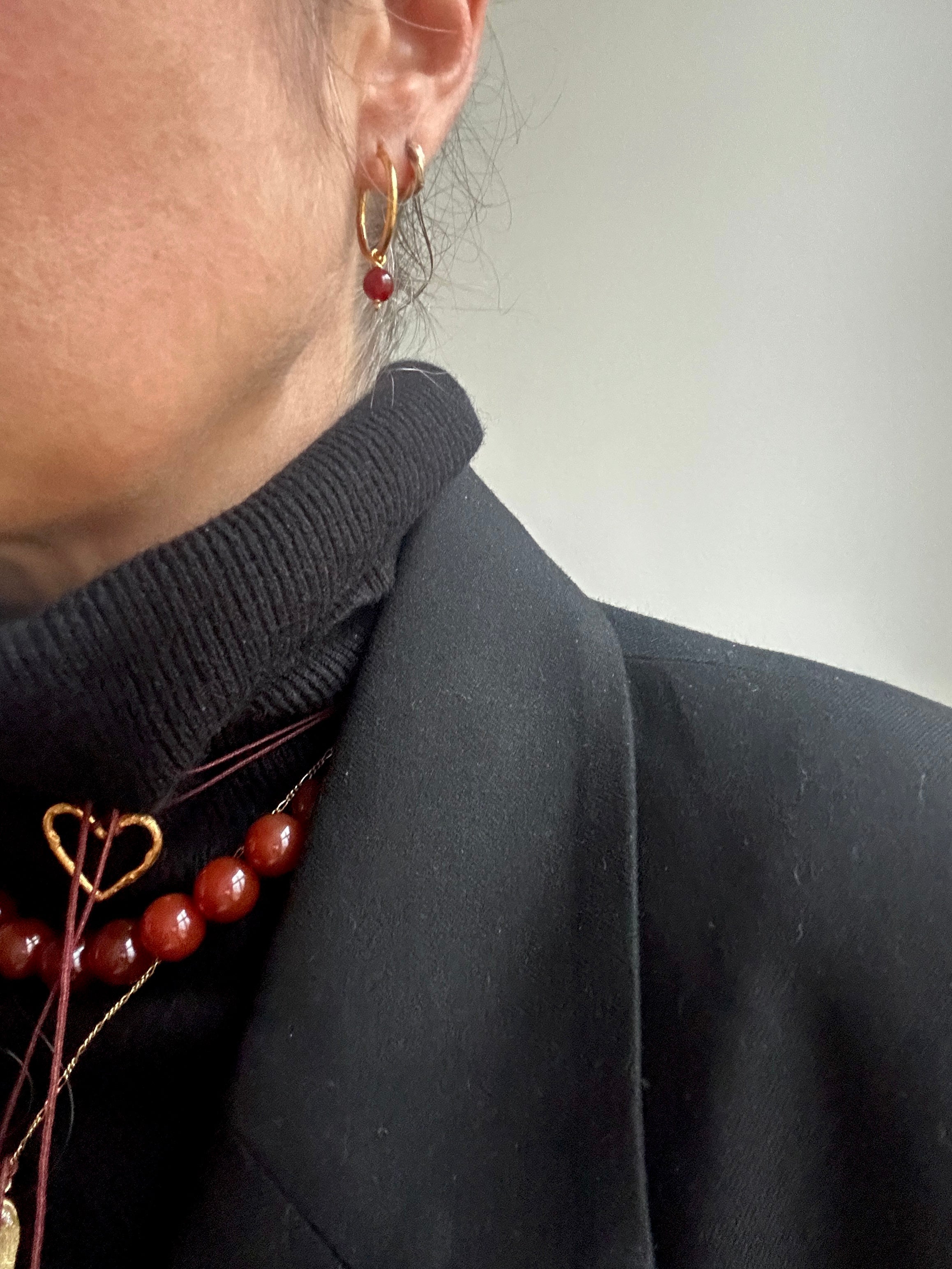 - A pair of decorative hoops with bordeaux carnelian, when you want a little extra sparkle