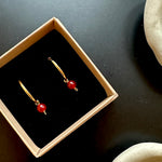 experience this pair of elegant hoops adorned with a deep bordeaux carnelian gemstone – a stone known for its warm colour and rich, glowing depth.