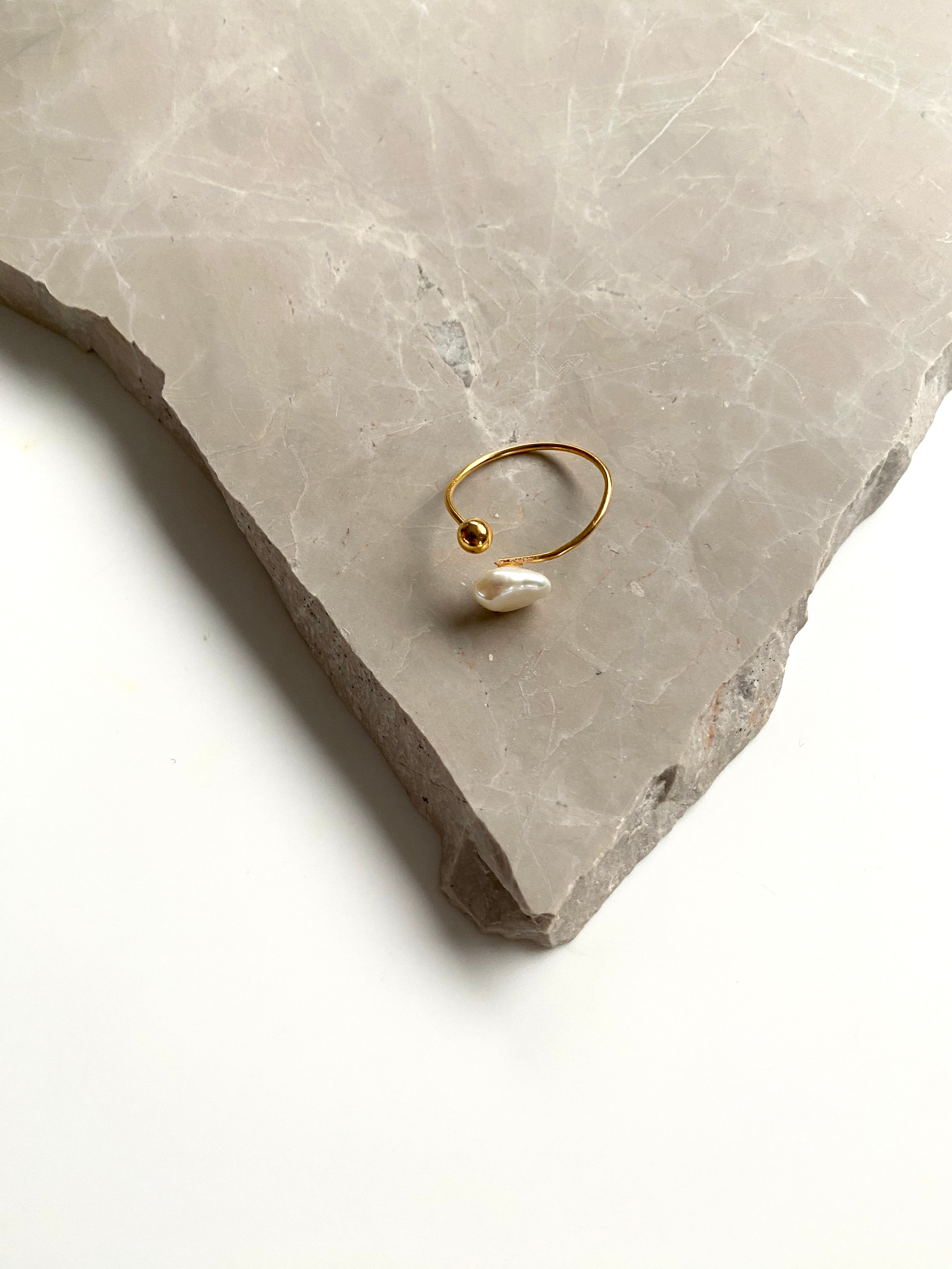 The Paulina Ring is designed with love for nordic minimalism with a feminine twist. The unique combination of a baroque pearl and a modern shape, makes this ring one of a kind.