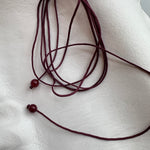 Its versatile design allows you to wear it in multiple ways—simply tie it to your desired length with a double knot. Fully adjustable, it can be styled to complement any neckline or outfit, and it can also be tied into a bow.