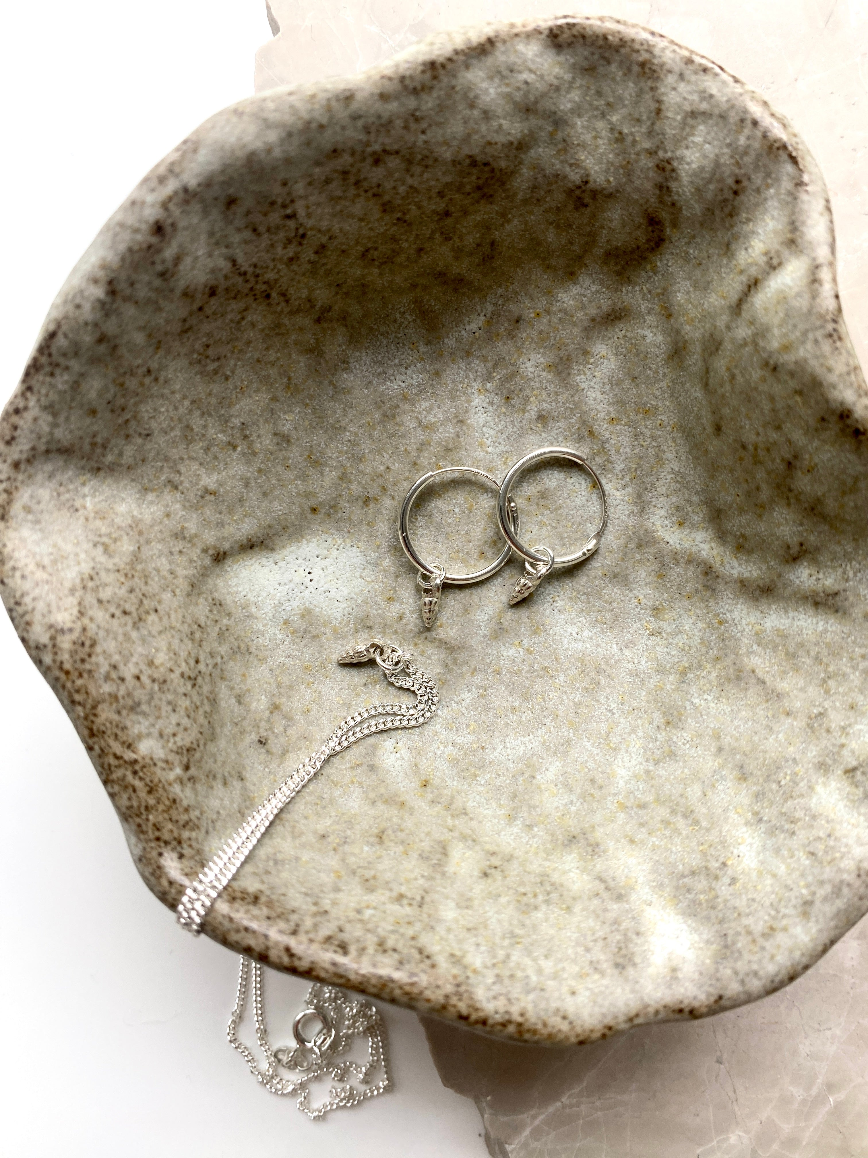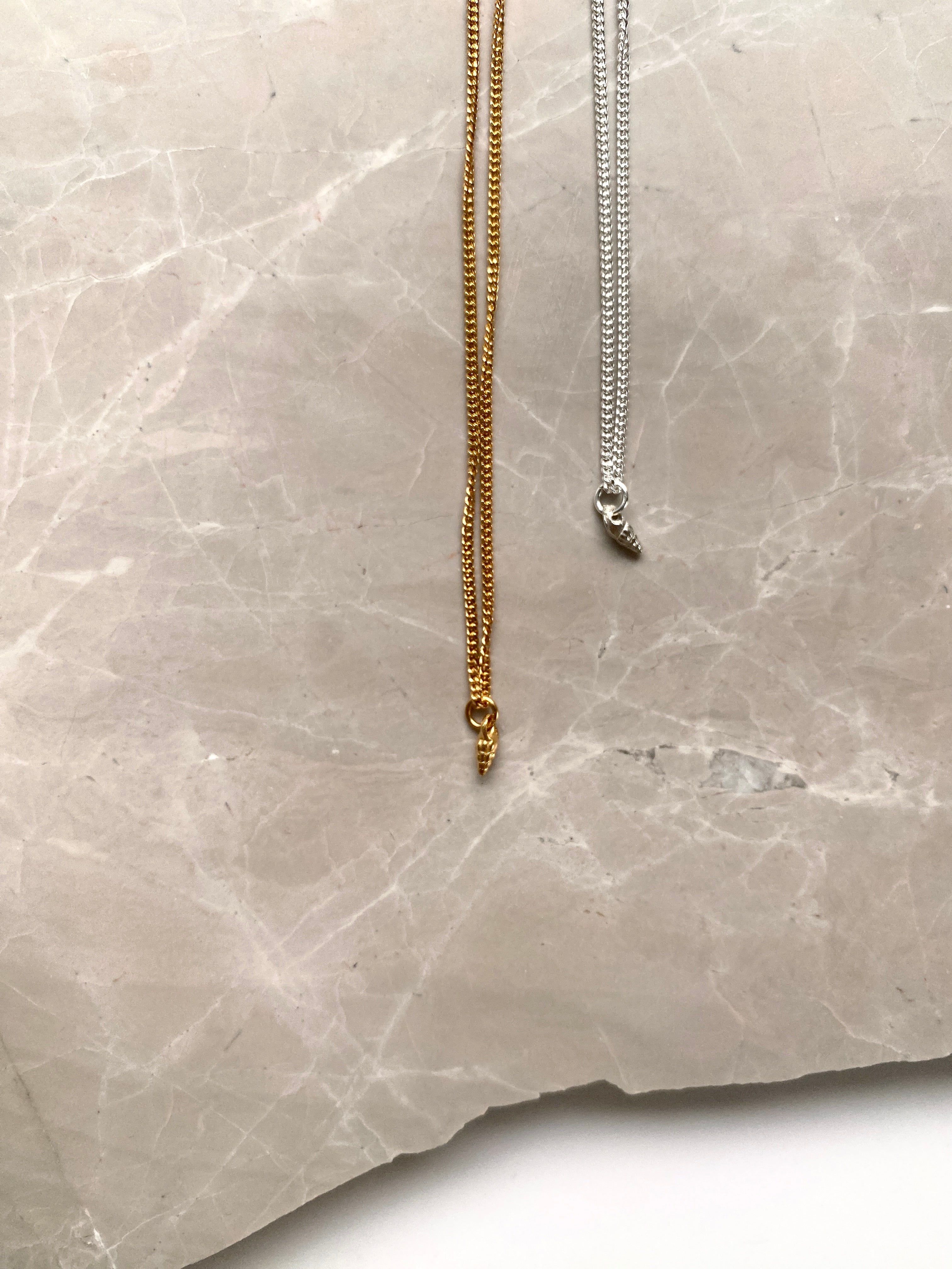 Capture the spirit of the ocean with the Corinne Necklace. The pendant is casted from a delicate small seashell found on the beach.