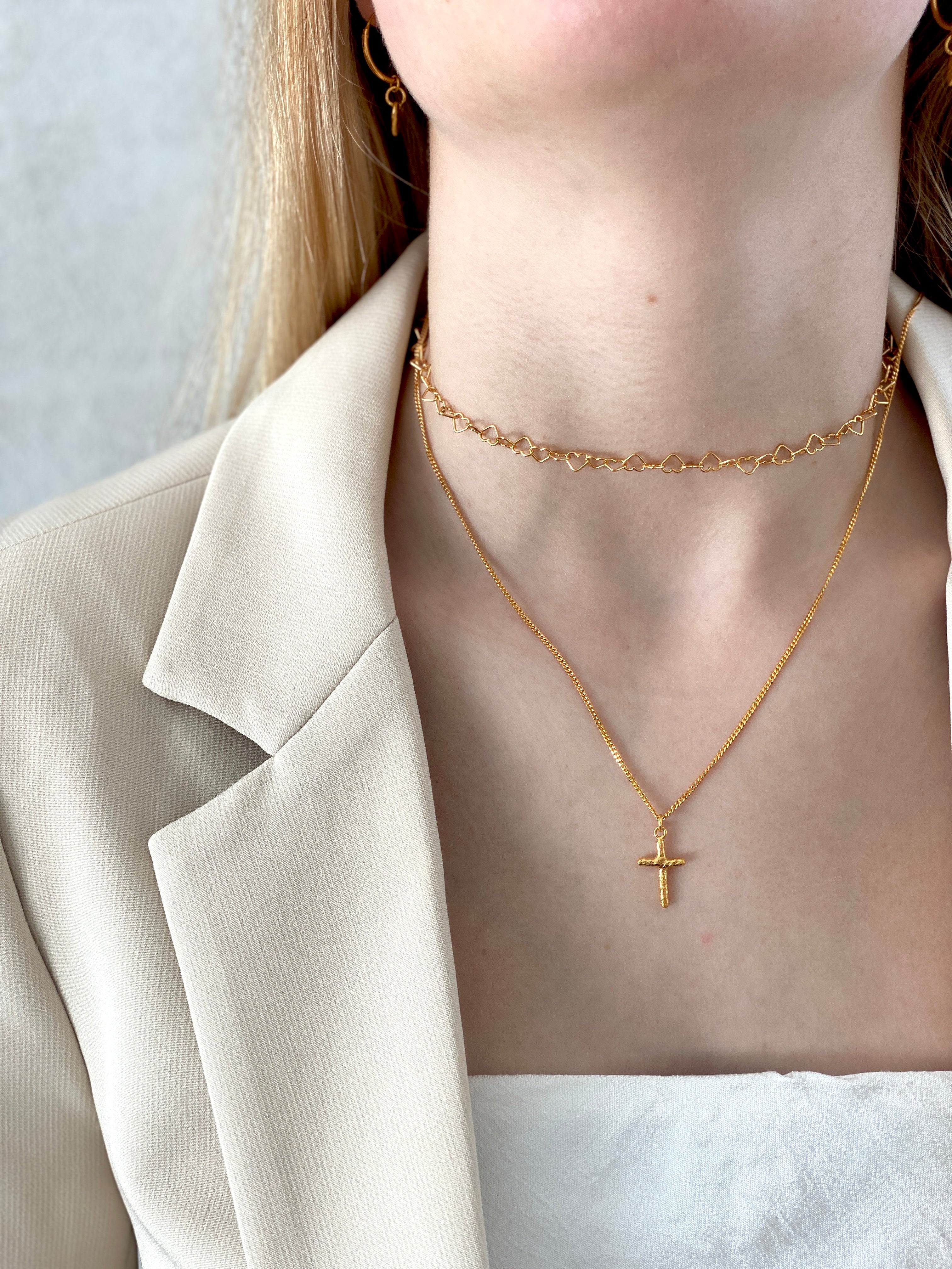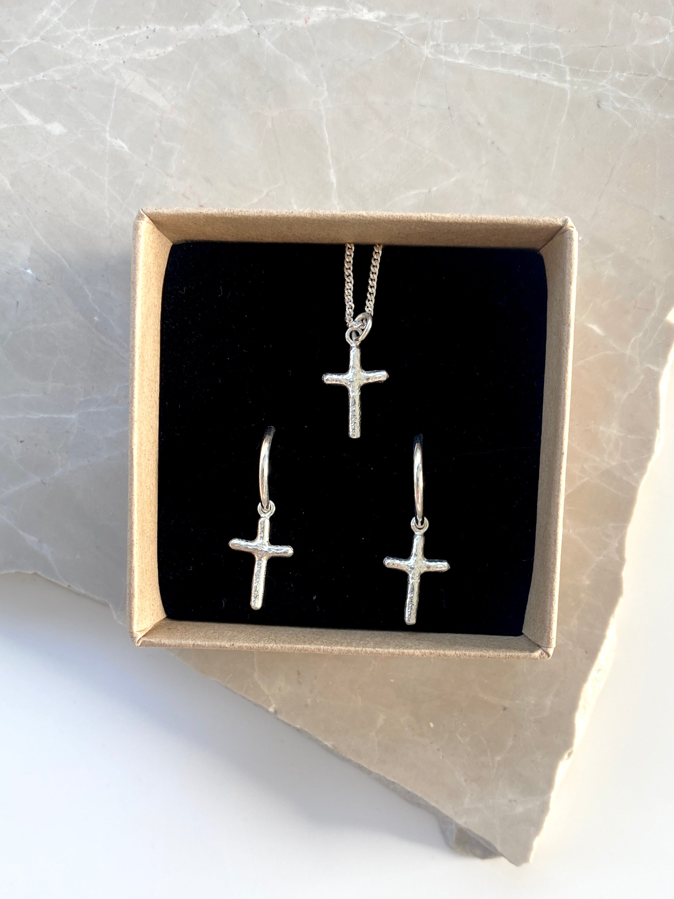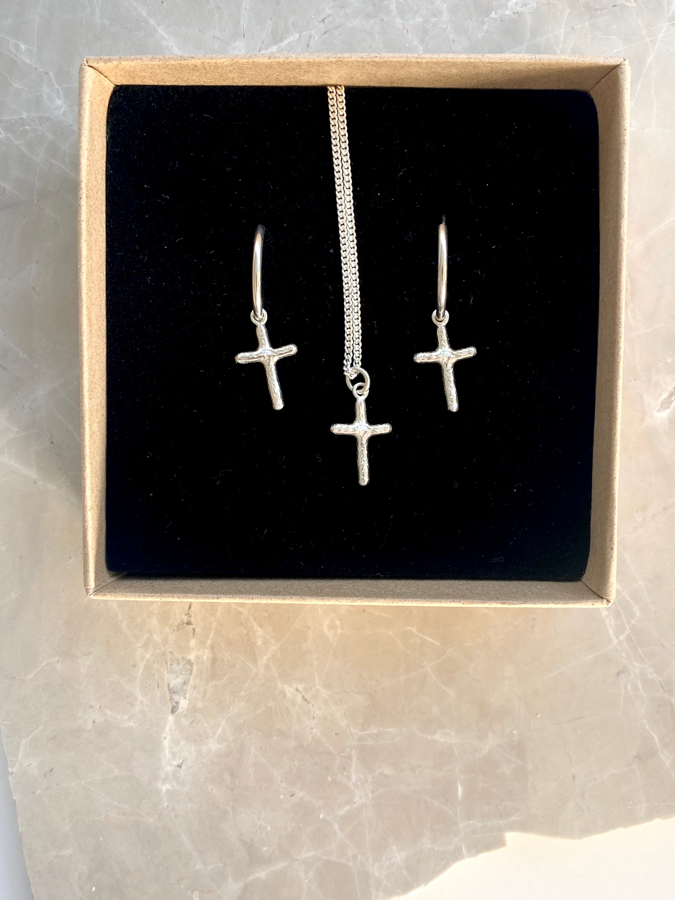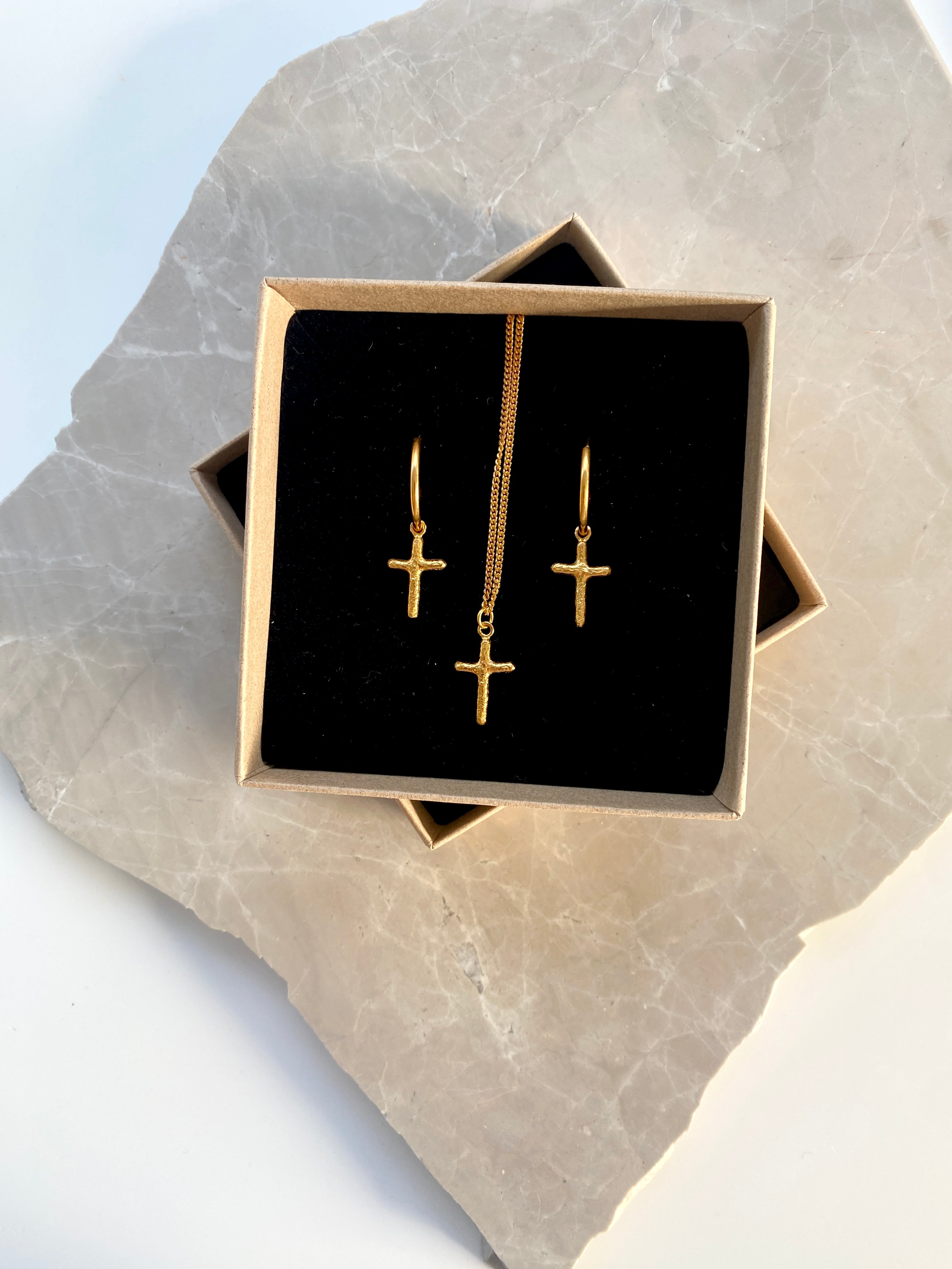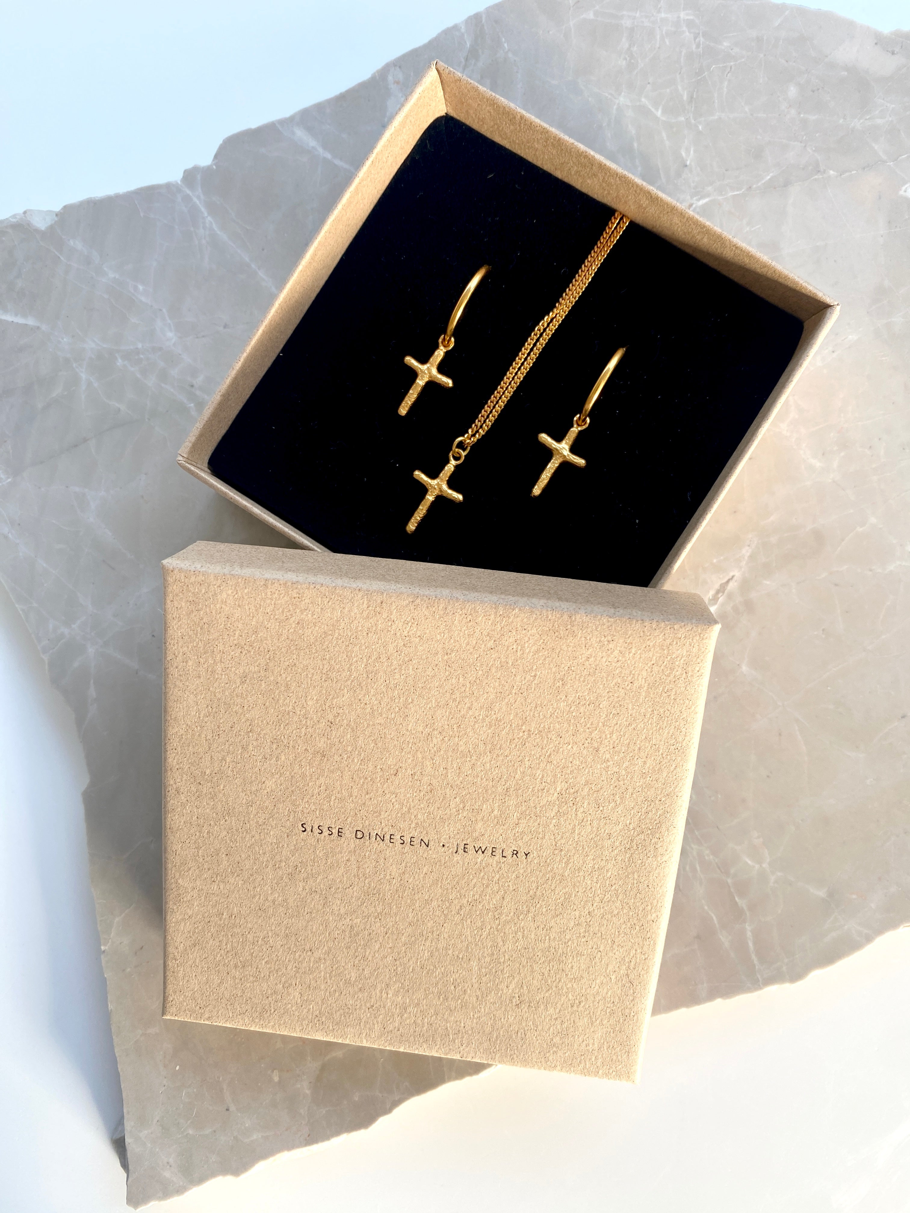 - Contains a pair of Cross hoops in size 1,5 mm and a Cross necklace in length 45 cm