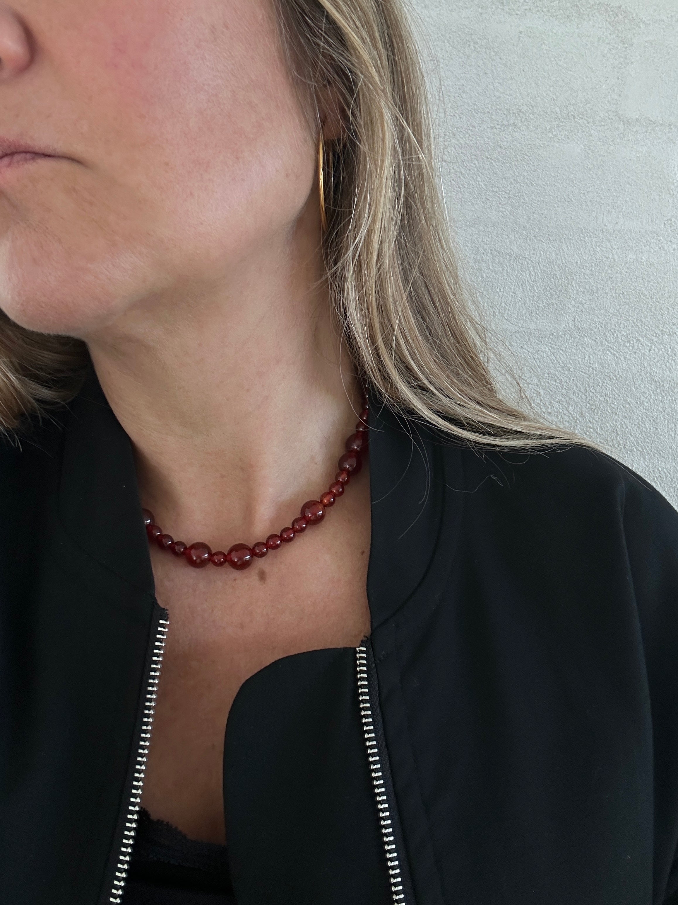This colourful dark red necklace is crafted with unique carnelian stones beads to give you an exclusive look. The necklace is the perfect accessory for any look. Crafted from superior materials, it is adjustable to fit any neck and to adjust to any outfit.