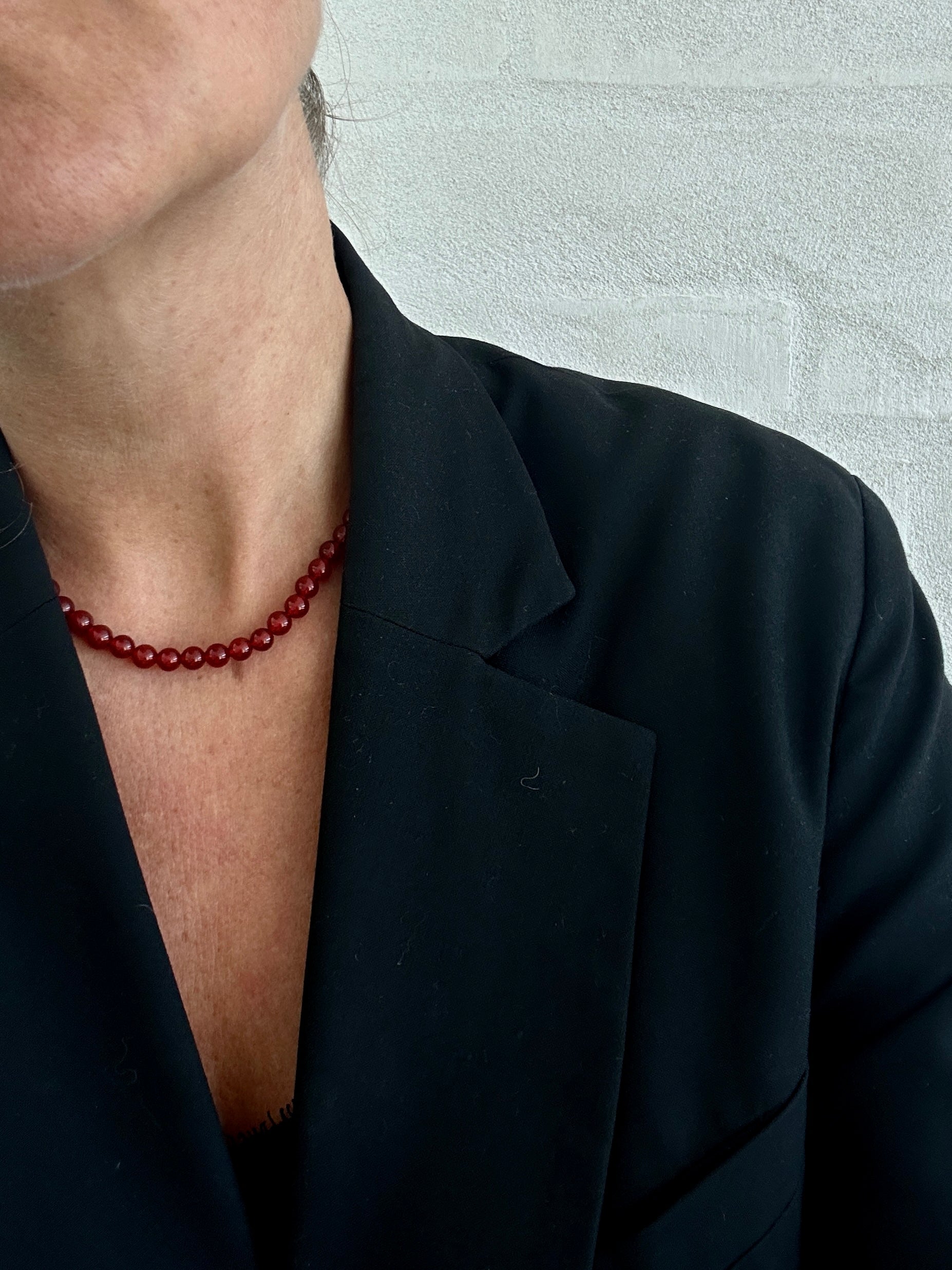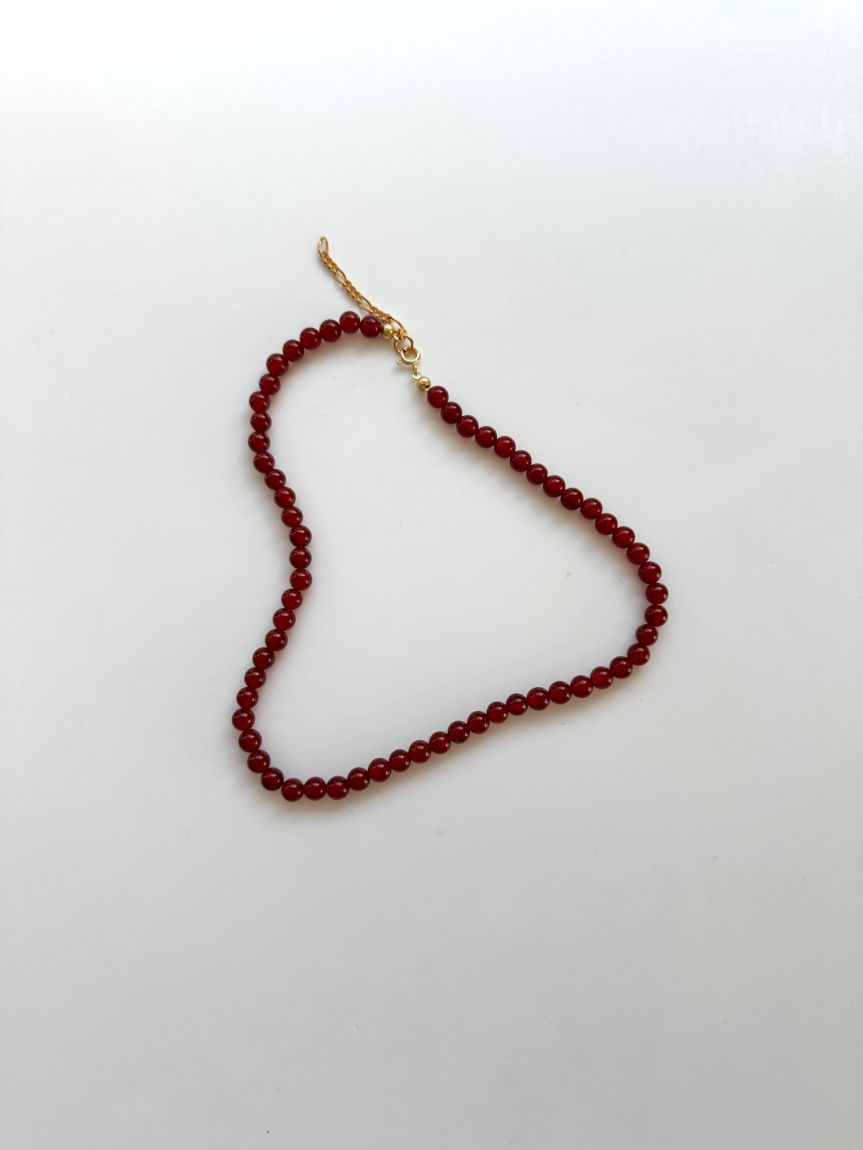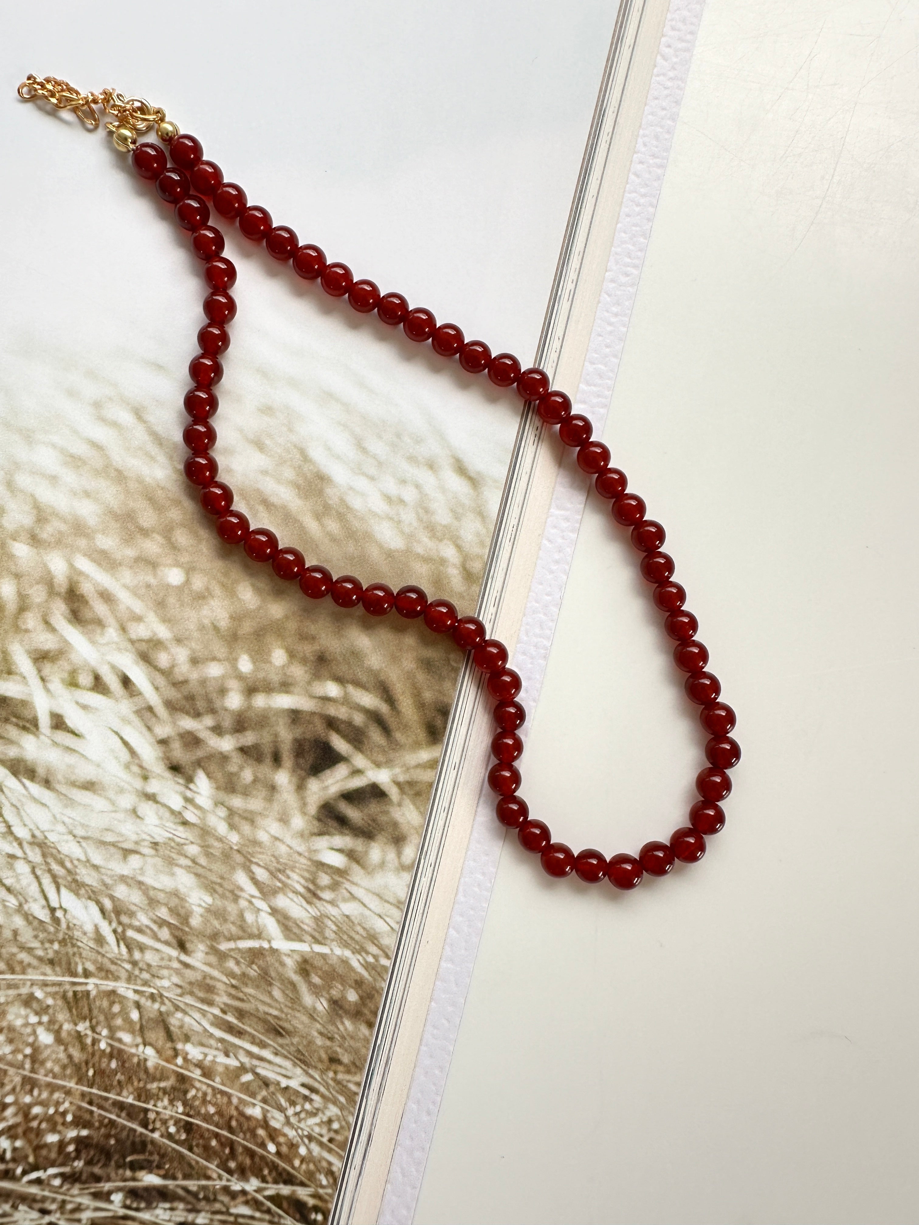 This colourful dark red necklace is crafted with unique carnelian stones beads to give you an exclusive look. The necklace is the perfect accessory for any look. Crafted from superior materials, it is adjustable to fit any neck and to adjust to any outfit.