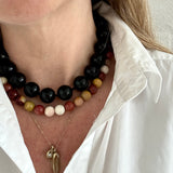 This colourful necklace in brown colour tones is crafted with unique Mookaite stones beads to give you an exclusive look. The necklace is the perfect accessory for any look. Crafted from superior materials, it is adjustable to fit any neck and to adjust to any outfit.