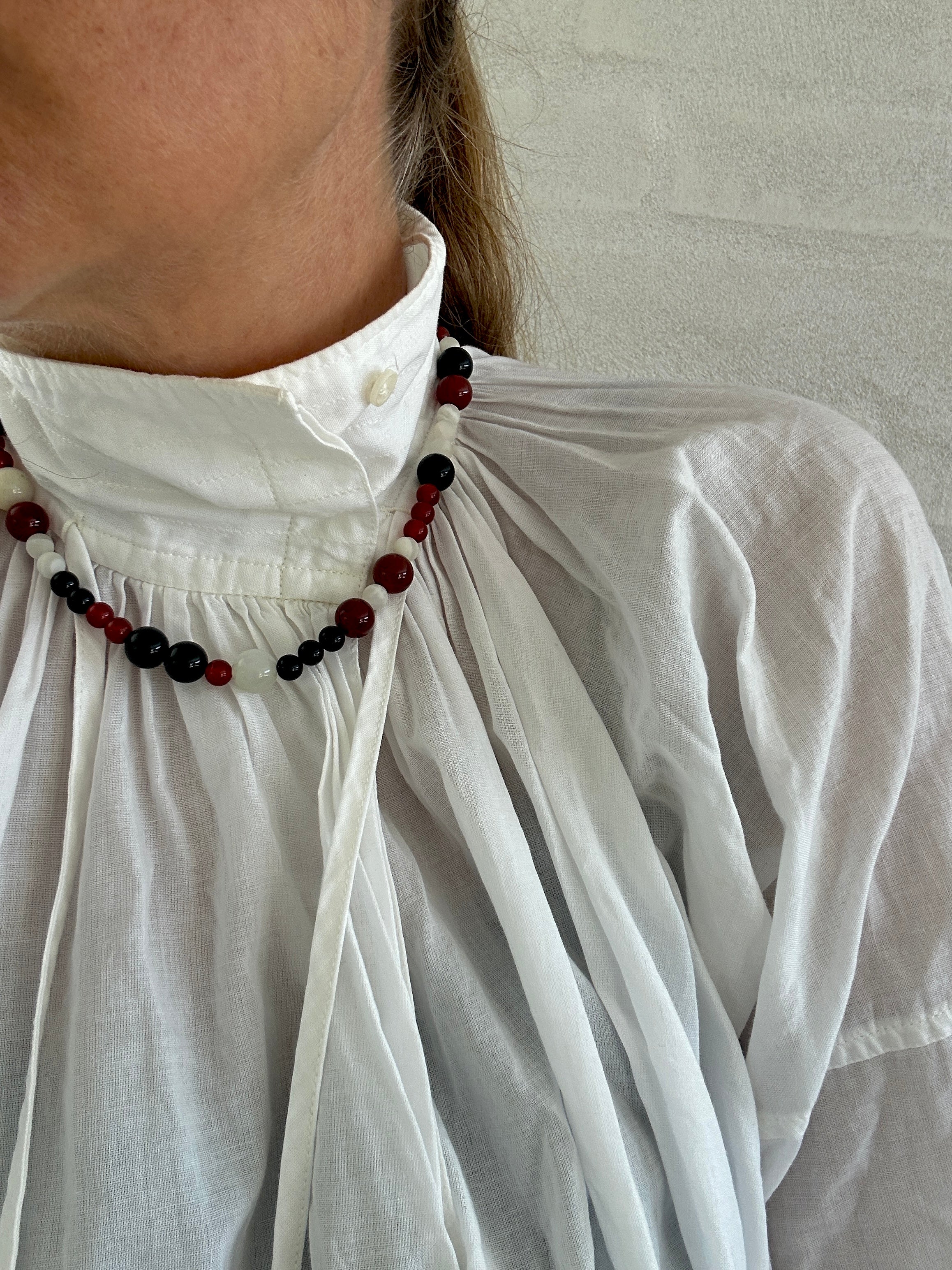 This Necklace is strung on jewelry thread. The thread will stretch over time, this might leave open gaps between the beads. This is not a defect, but a sign of everyday use.