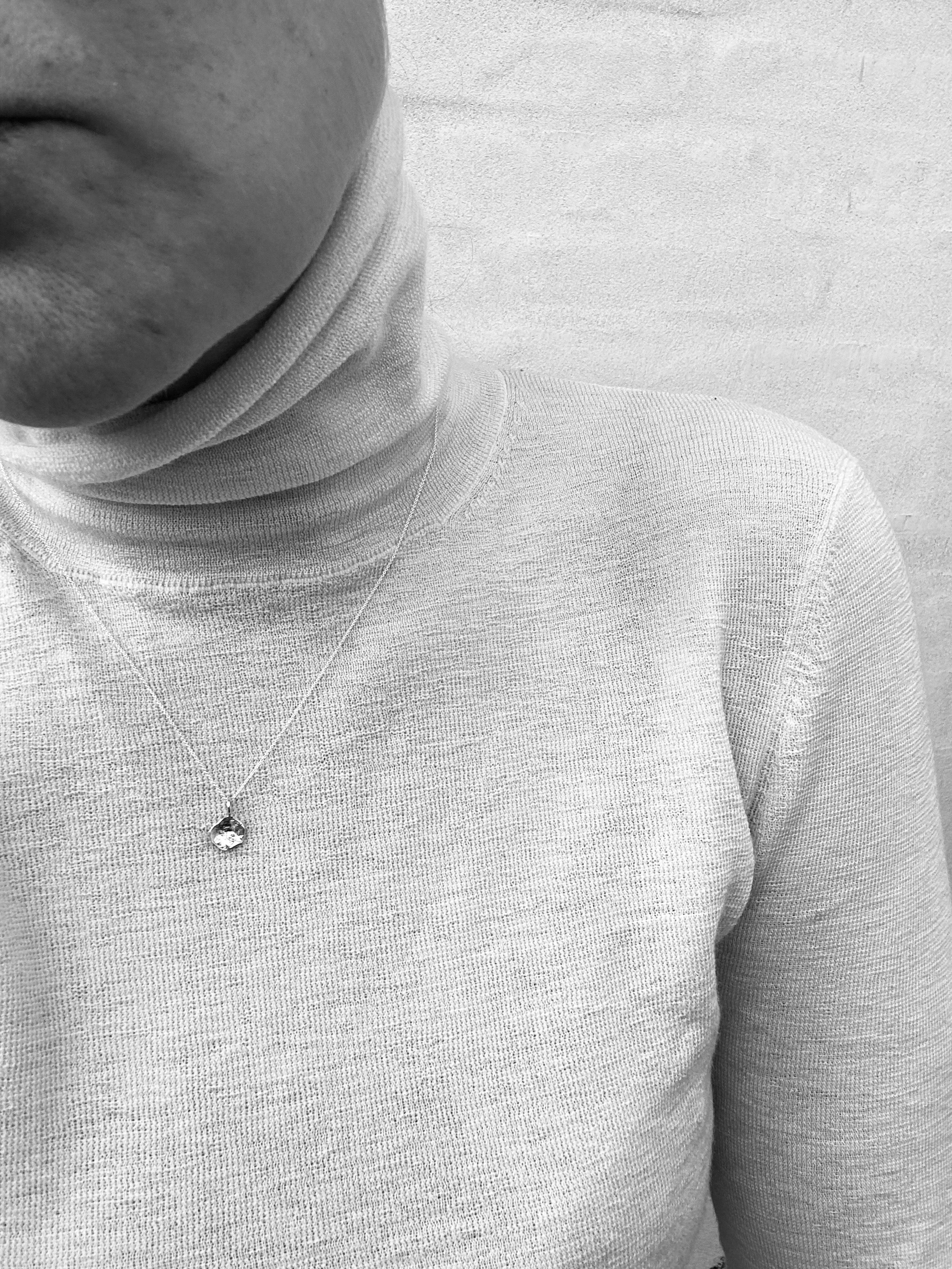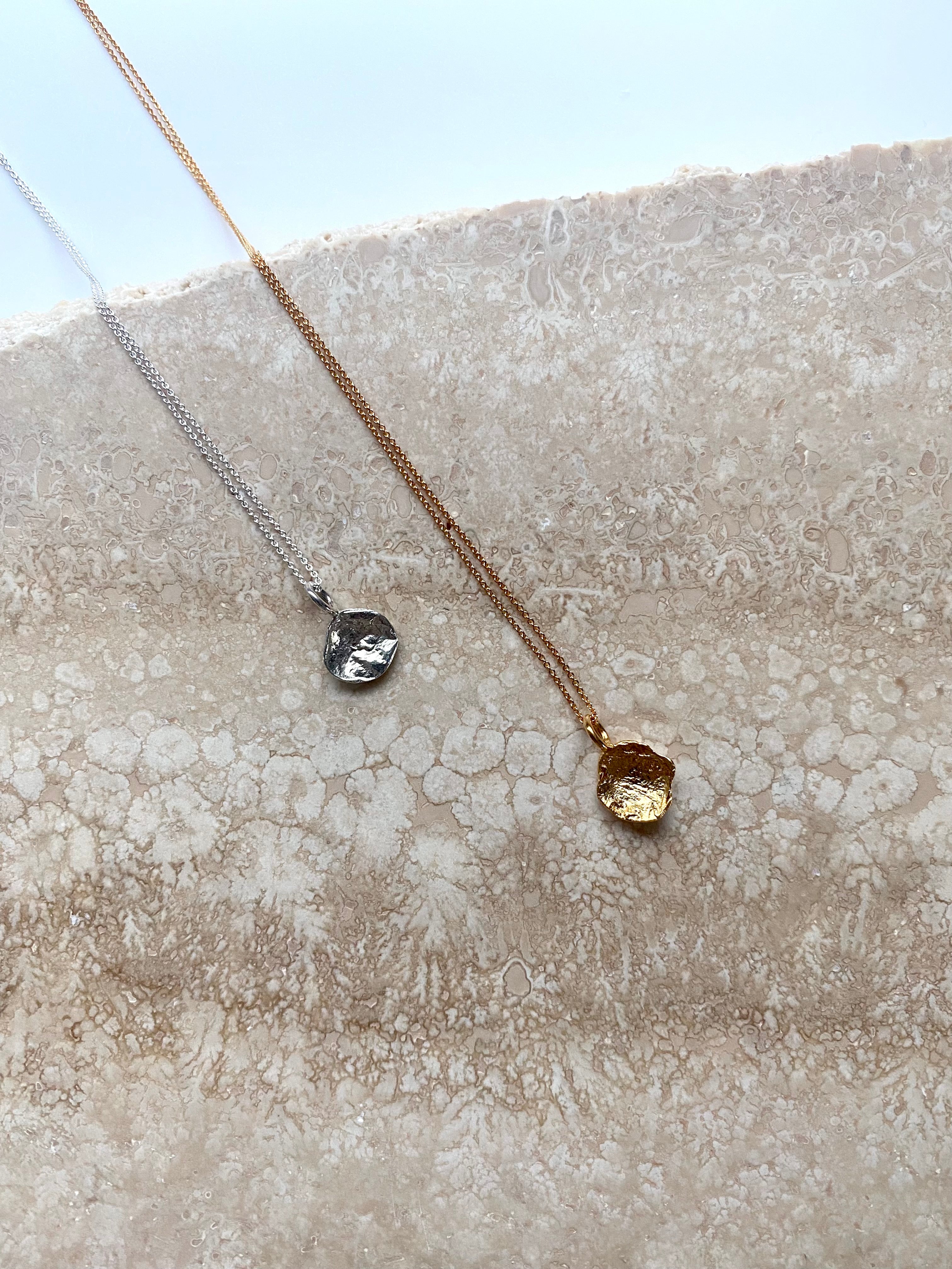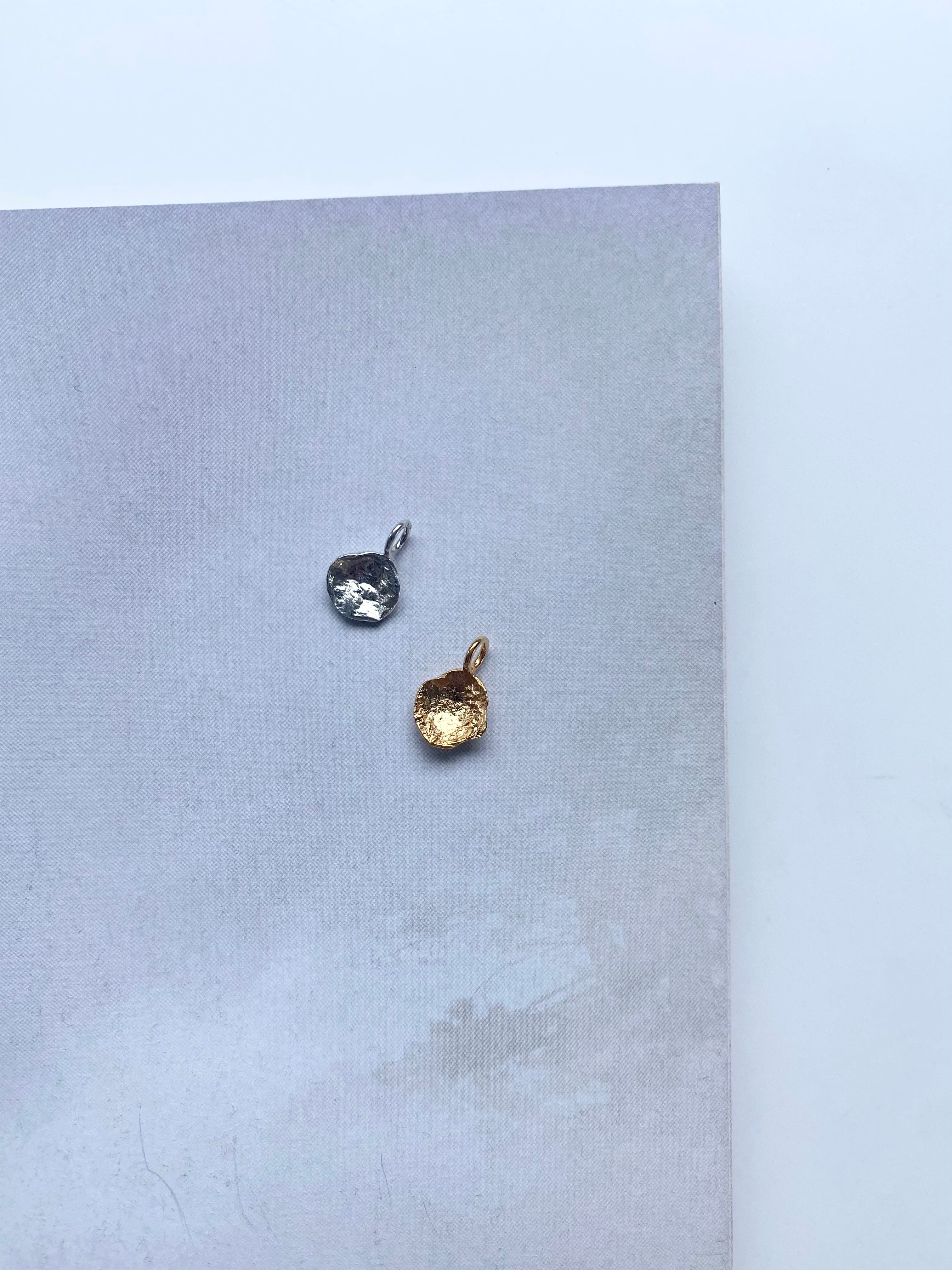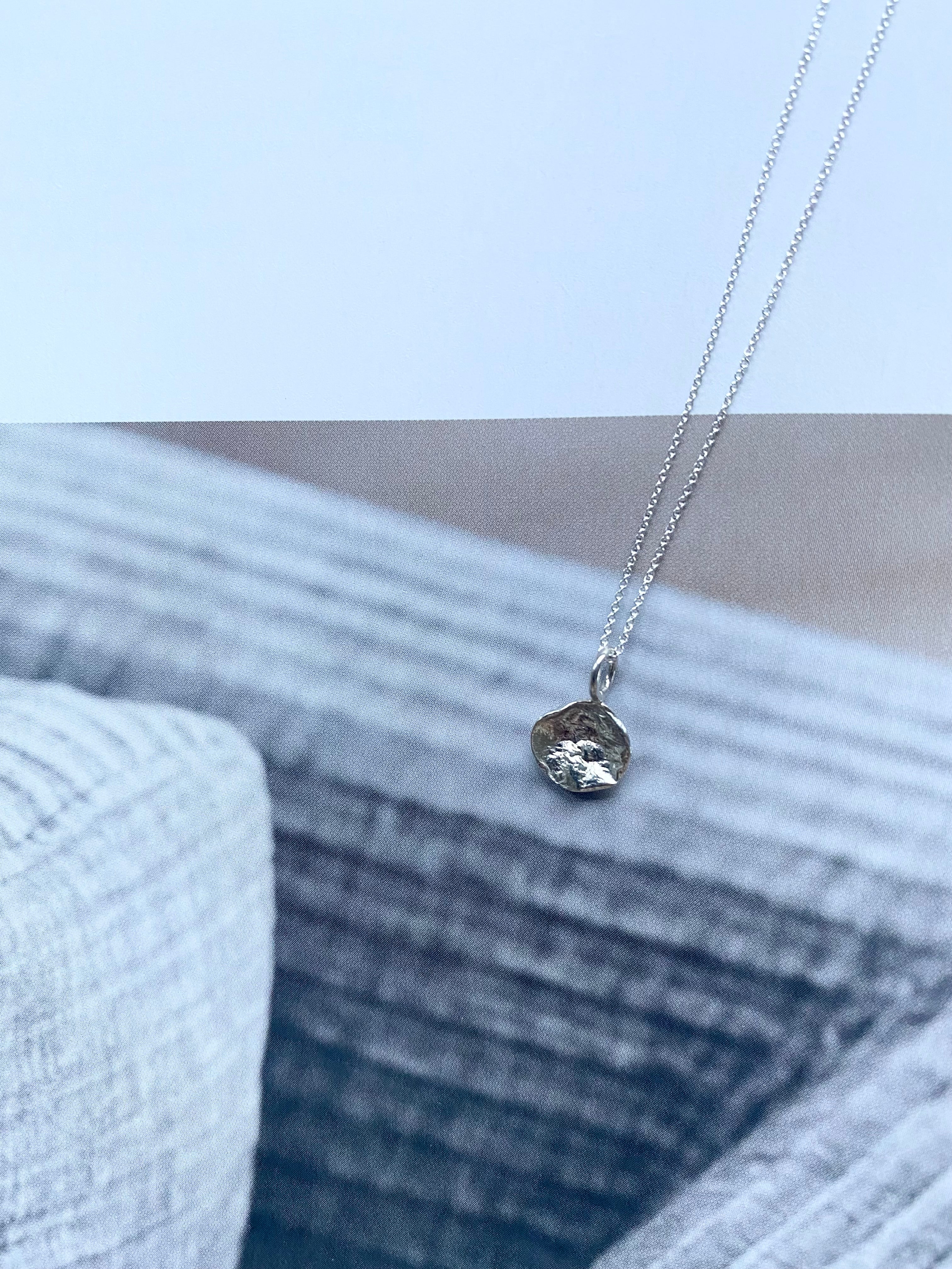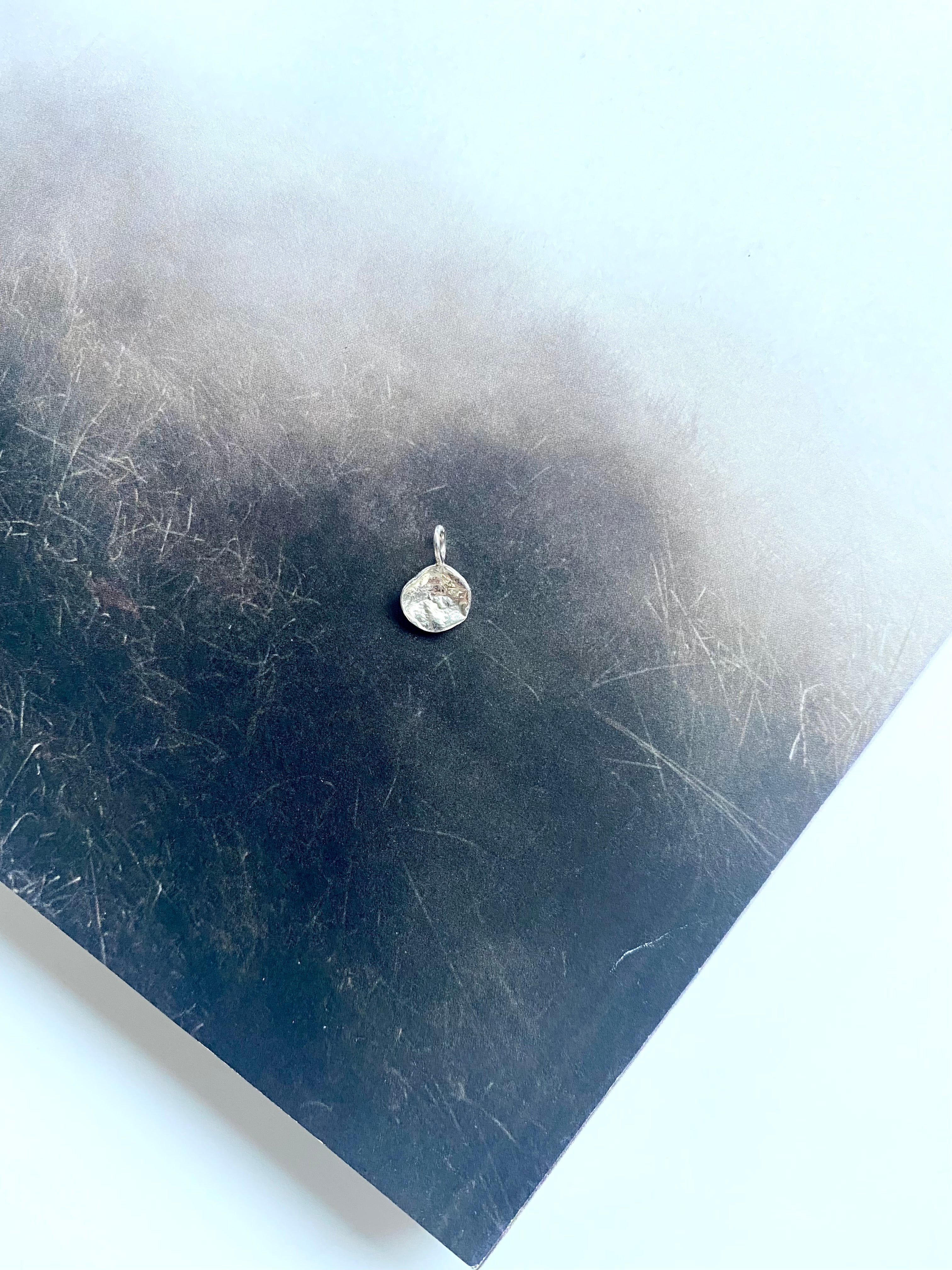 This little pendant is made with unique structured surface. It’s melted into a unique form. The pendant can be used with both sides as face side