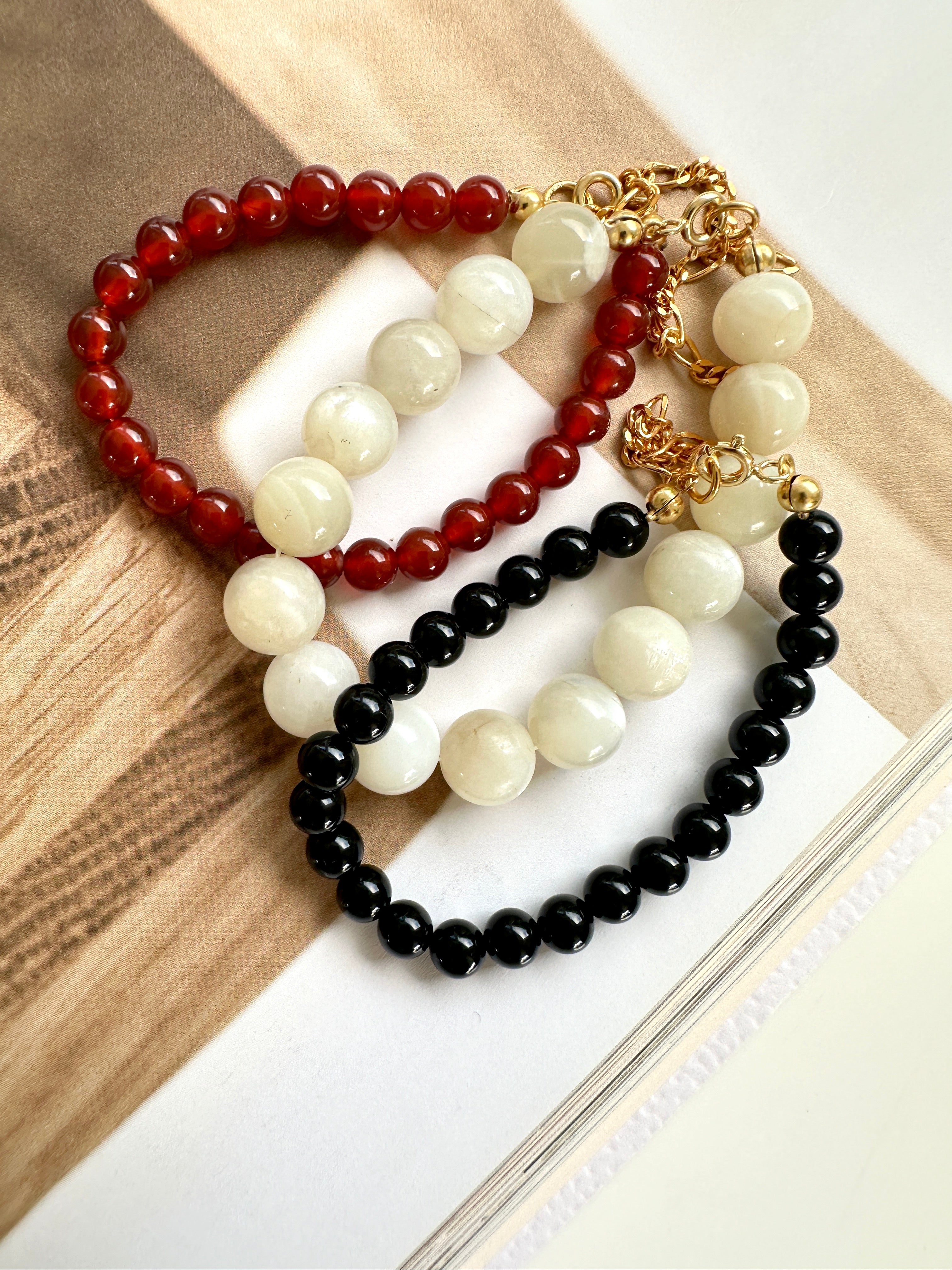 This white/beige bracelet is crafted with luxurious moonstones to give you an exclusive look. The bracelet is the perfect accessory for any look. Crafted from superior materials, it is adjustable to fit any wrist size.