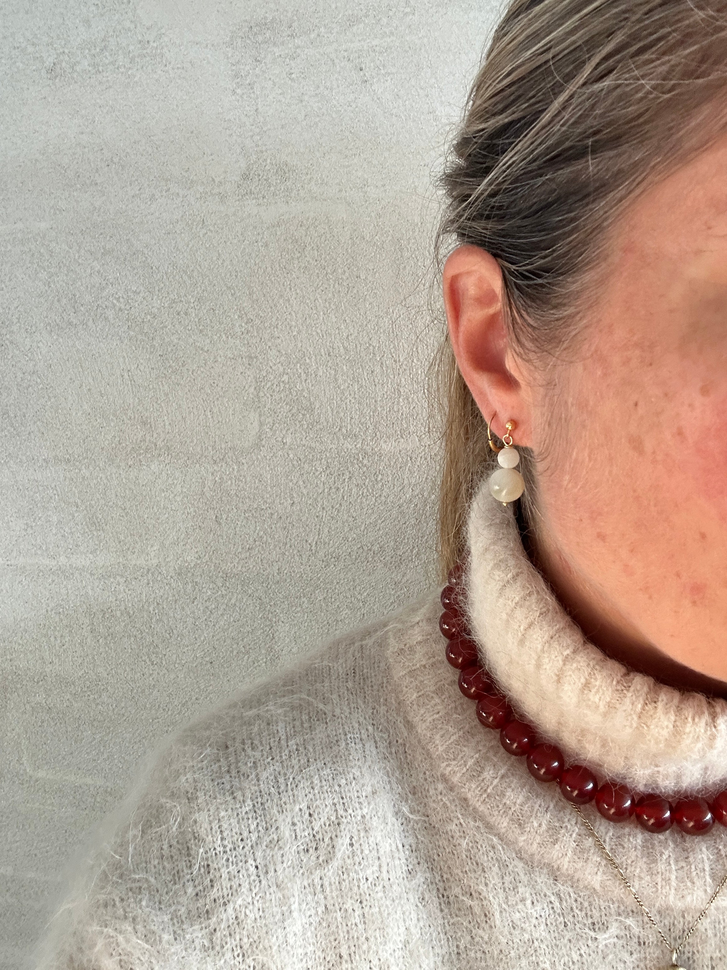 This white/beige earrings are crafted with luxurious moonstones to give you an exclusive look. The earrings are the perfect accessory for any look.