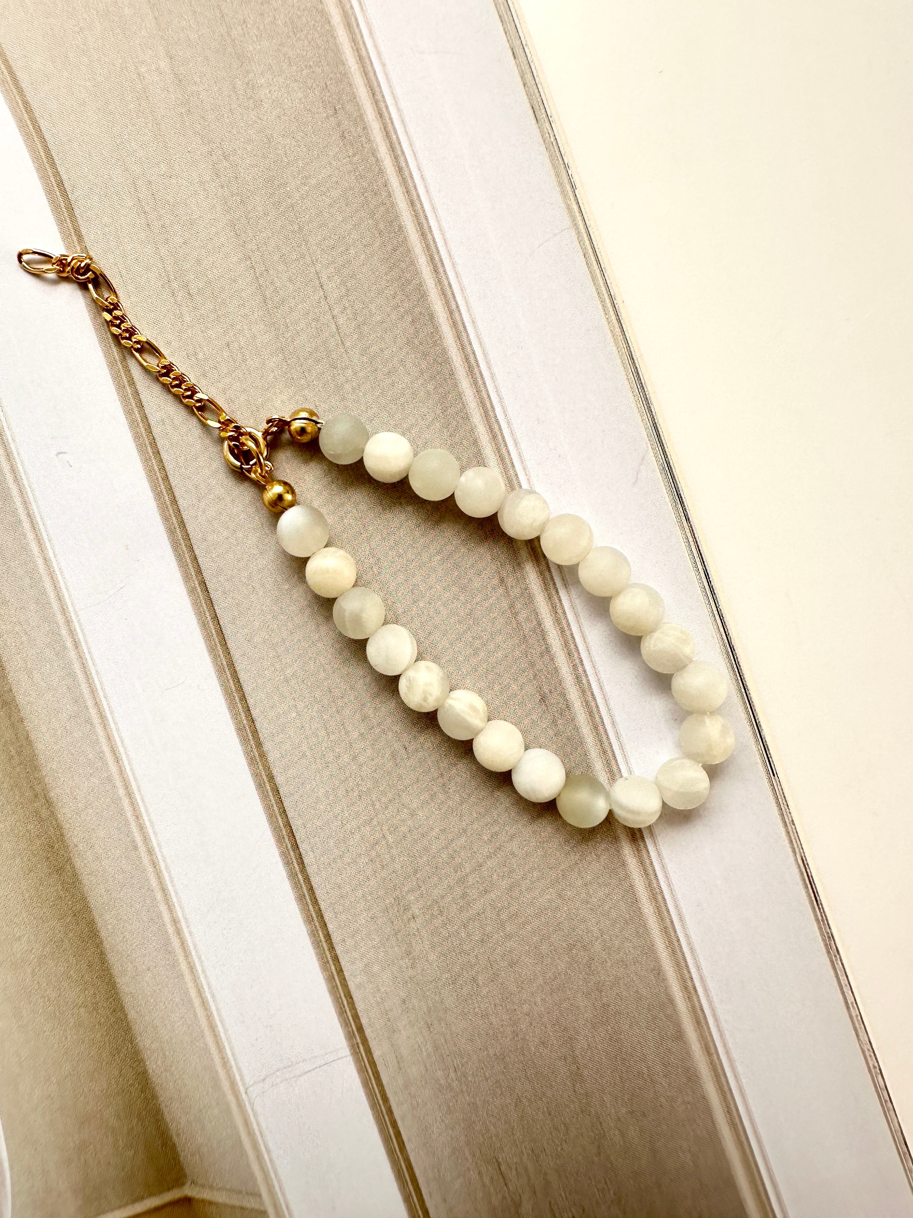 This white/beige bracelet is crafted with luxurious moonstones to give you an exclusive look. The bracelet is the perfect accessory for any look. Crafted from superior materials, it is adjustable to fit any wrist size.