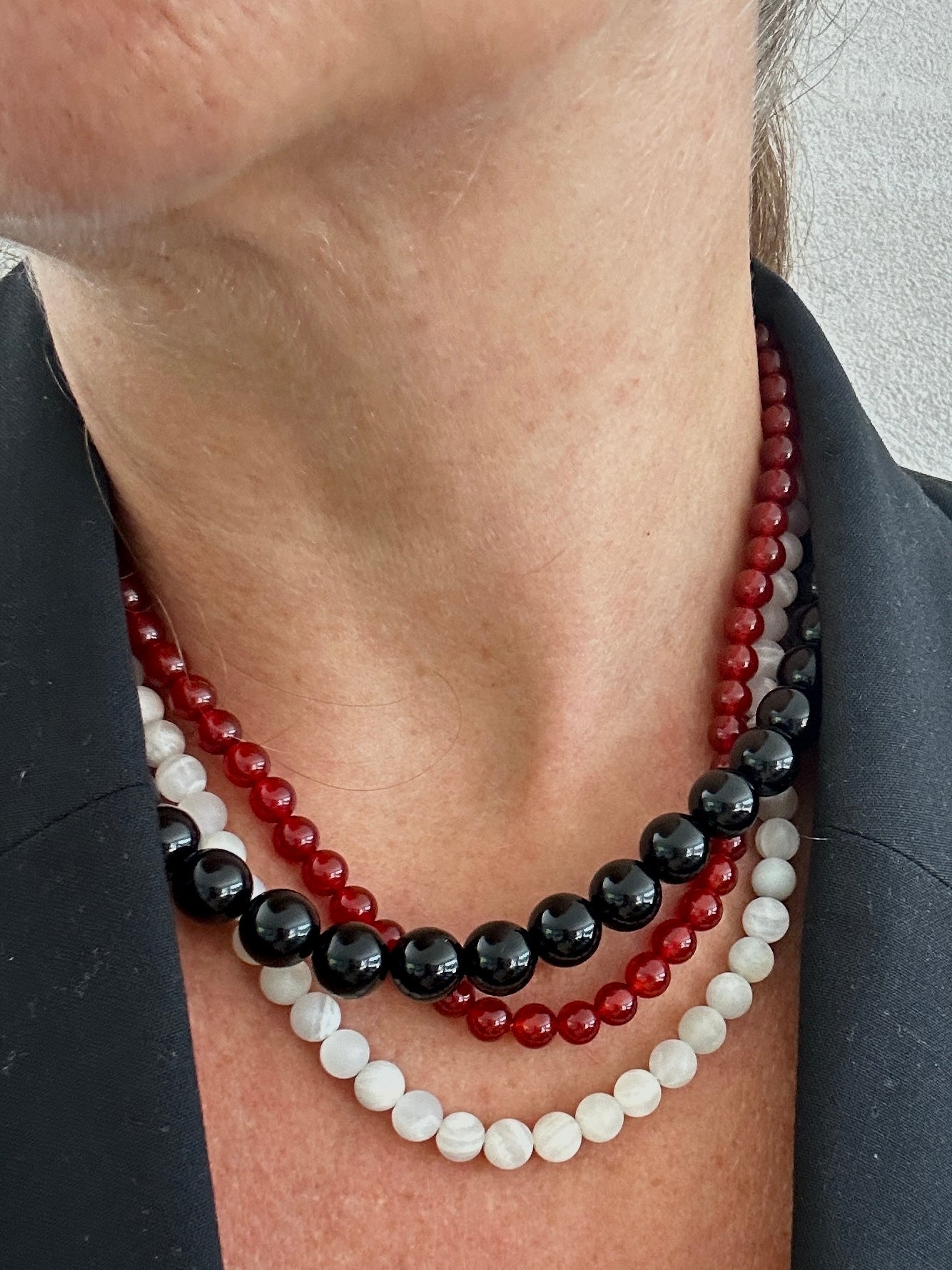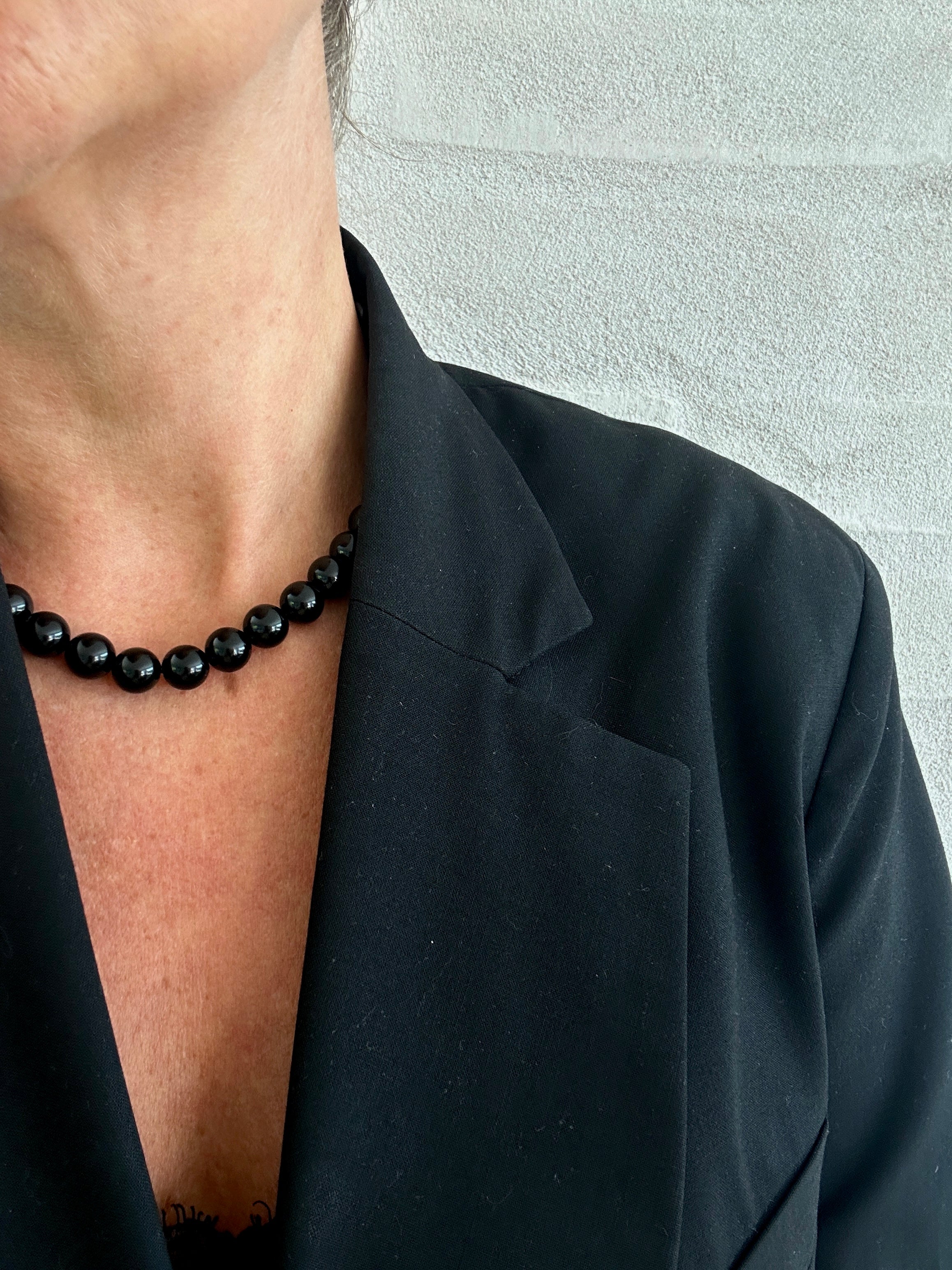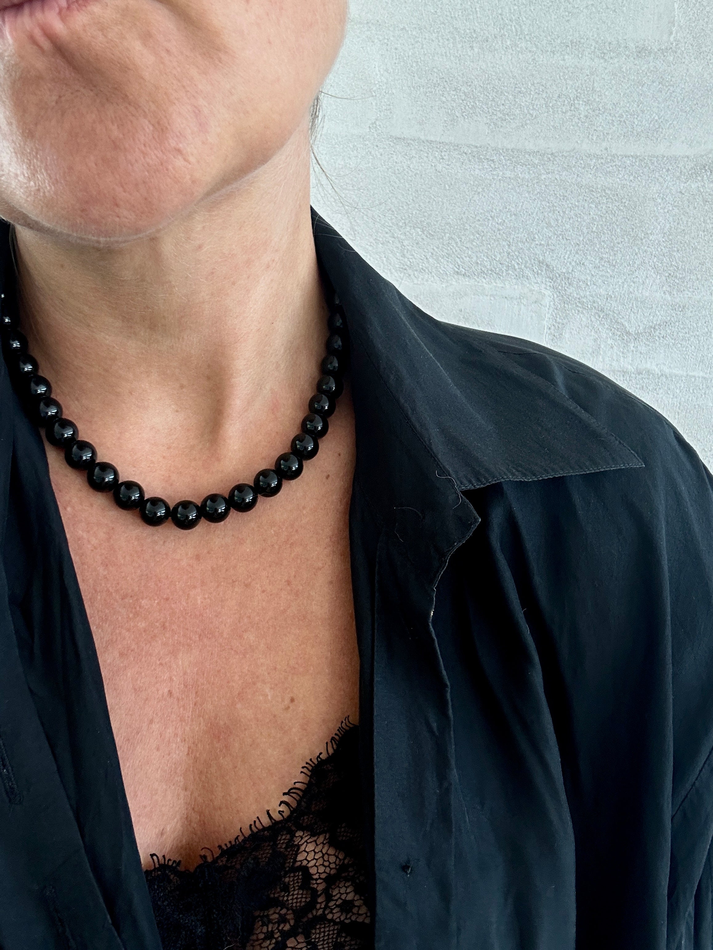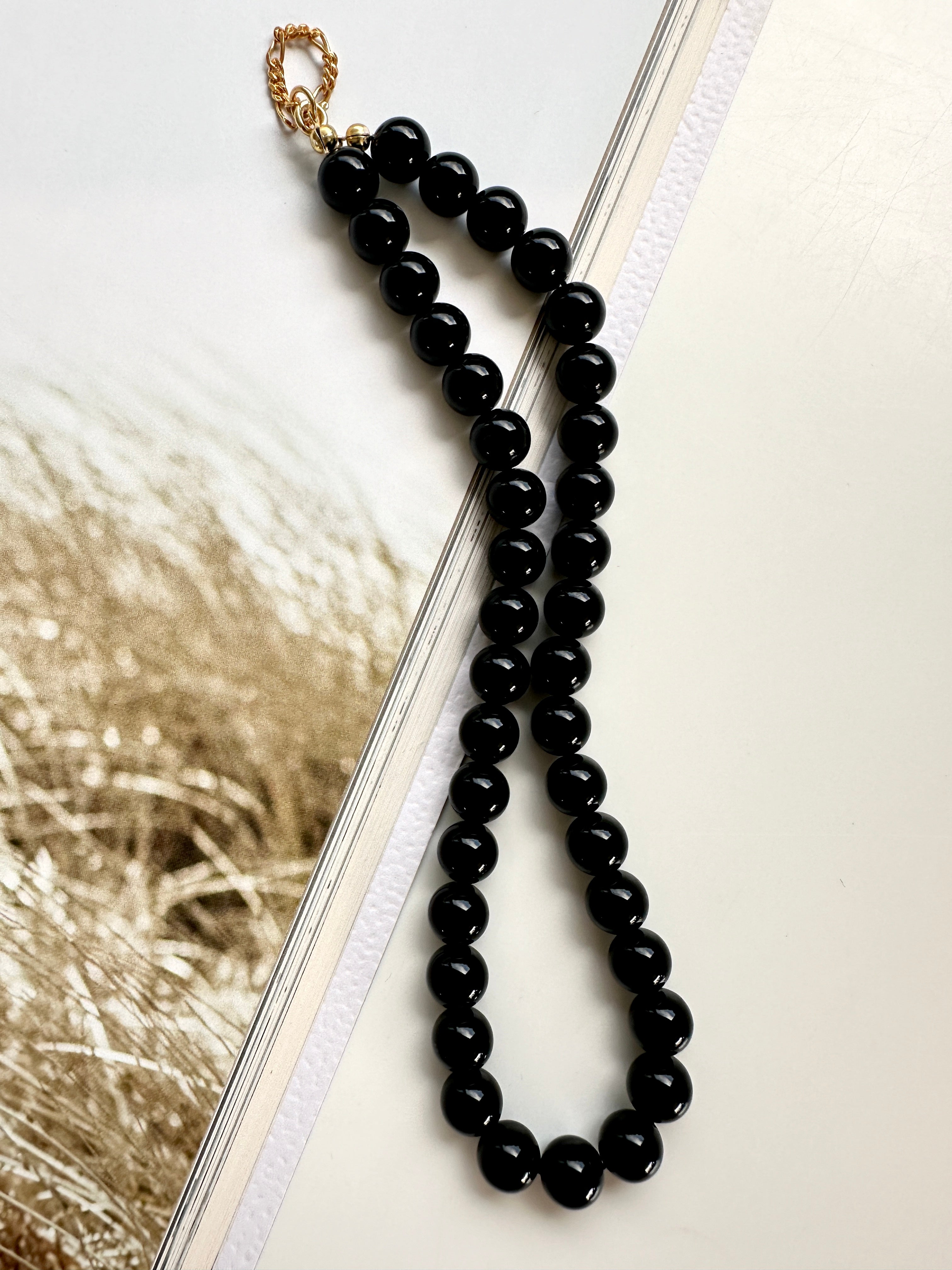 This true black necklace is crafted with unique Onyx beads to give you an exclusive look. The necklace is the perfect accessory for any look. Crafted from superior materials, it is adjustable to fit any neck and to adjust to any outfit.
