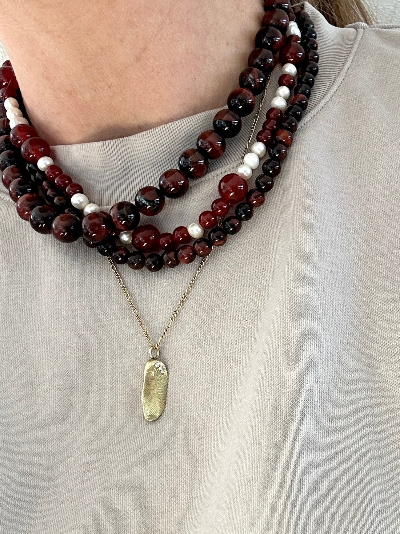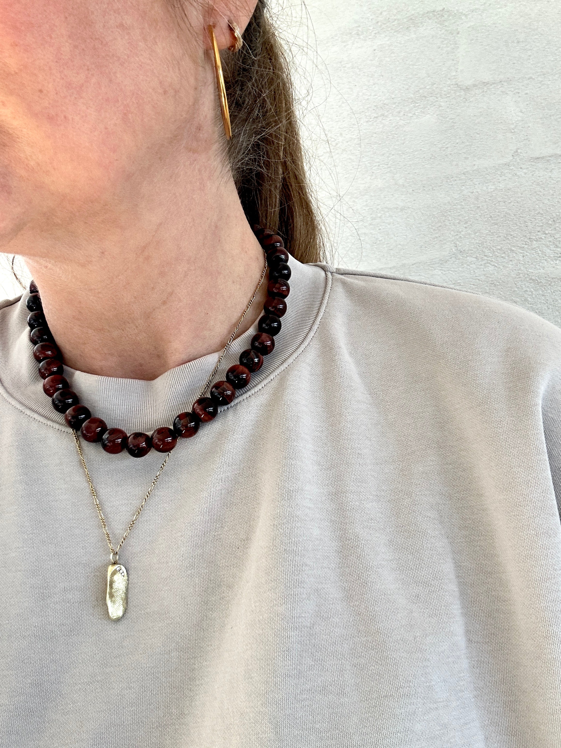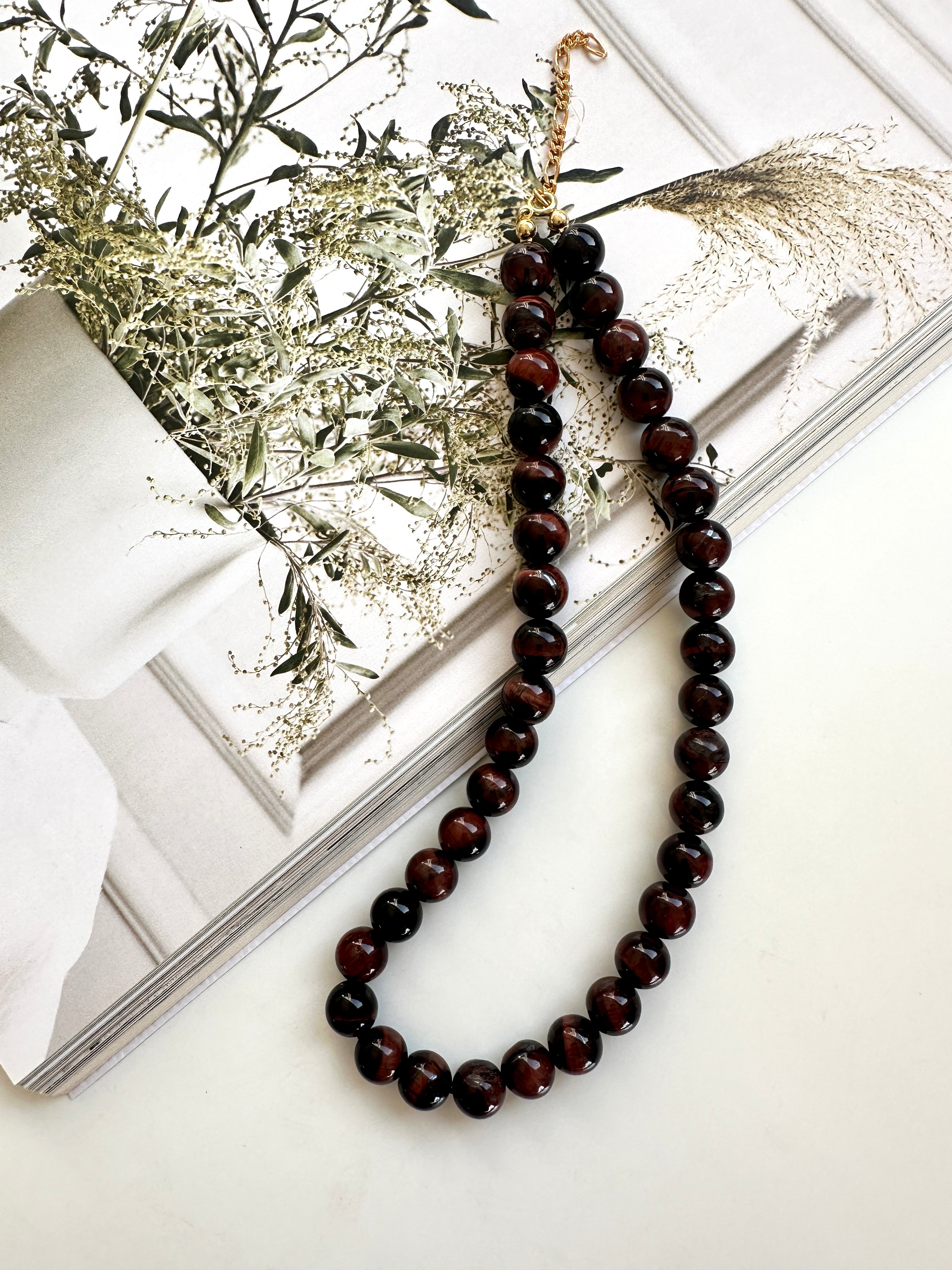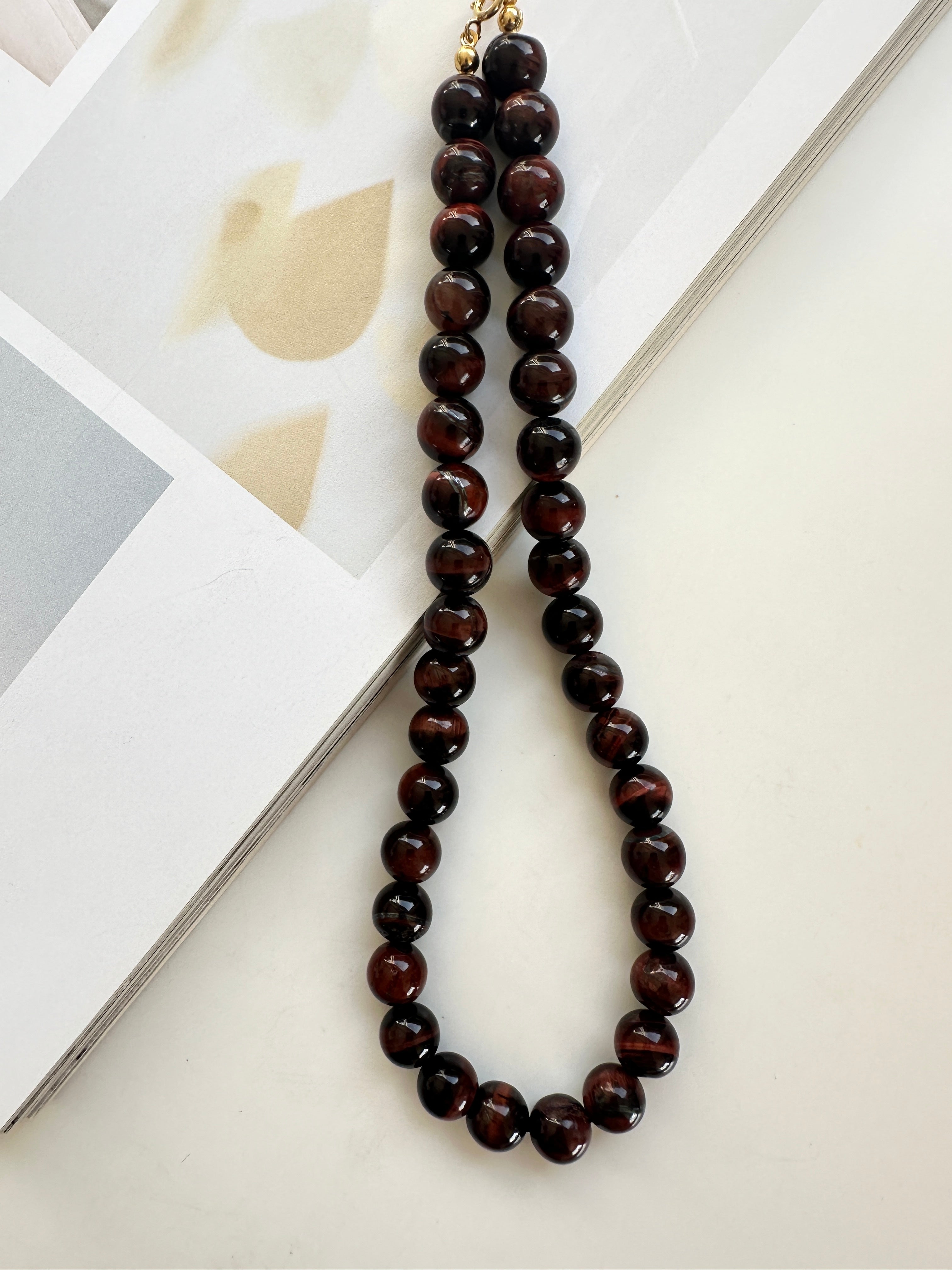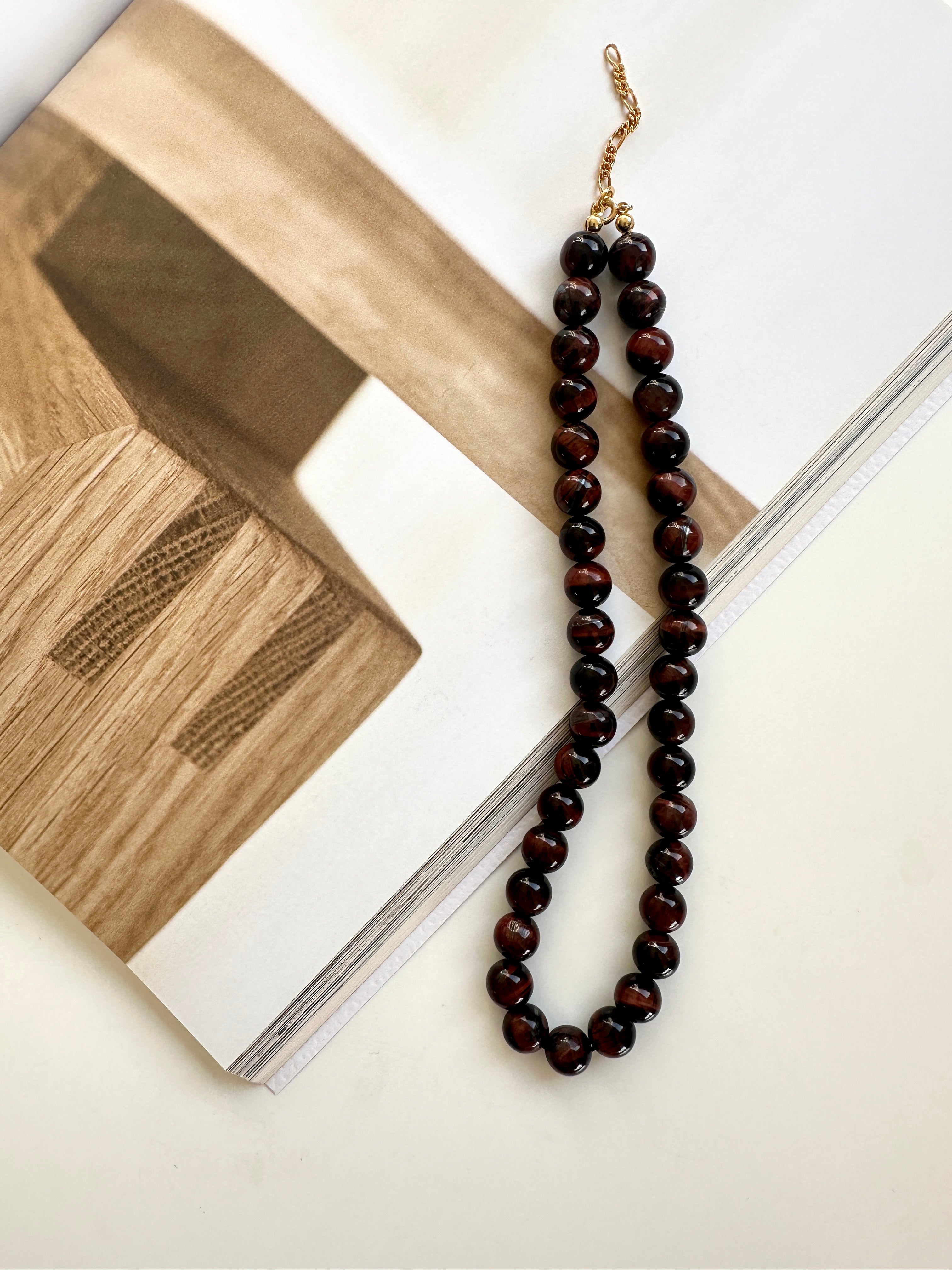 This colourful dark brown necklace is crafted with unique Bull´s eye stones beads to give you an exclusive look. The necklace is the perfect accessory for any look. Crafted from superior materials, it is adjustable to fit any neck and to adjust to any outfit.