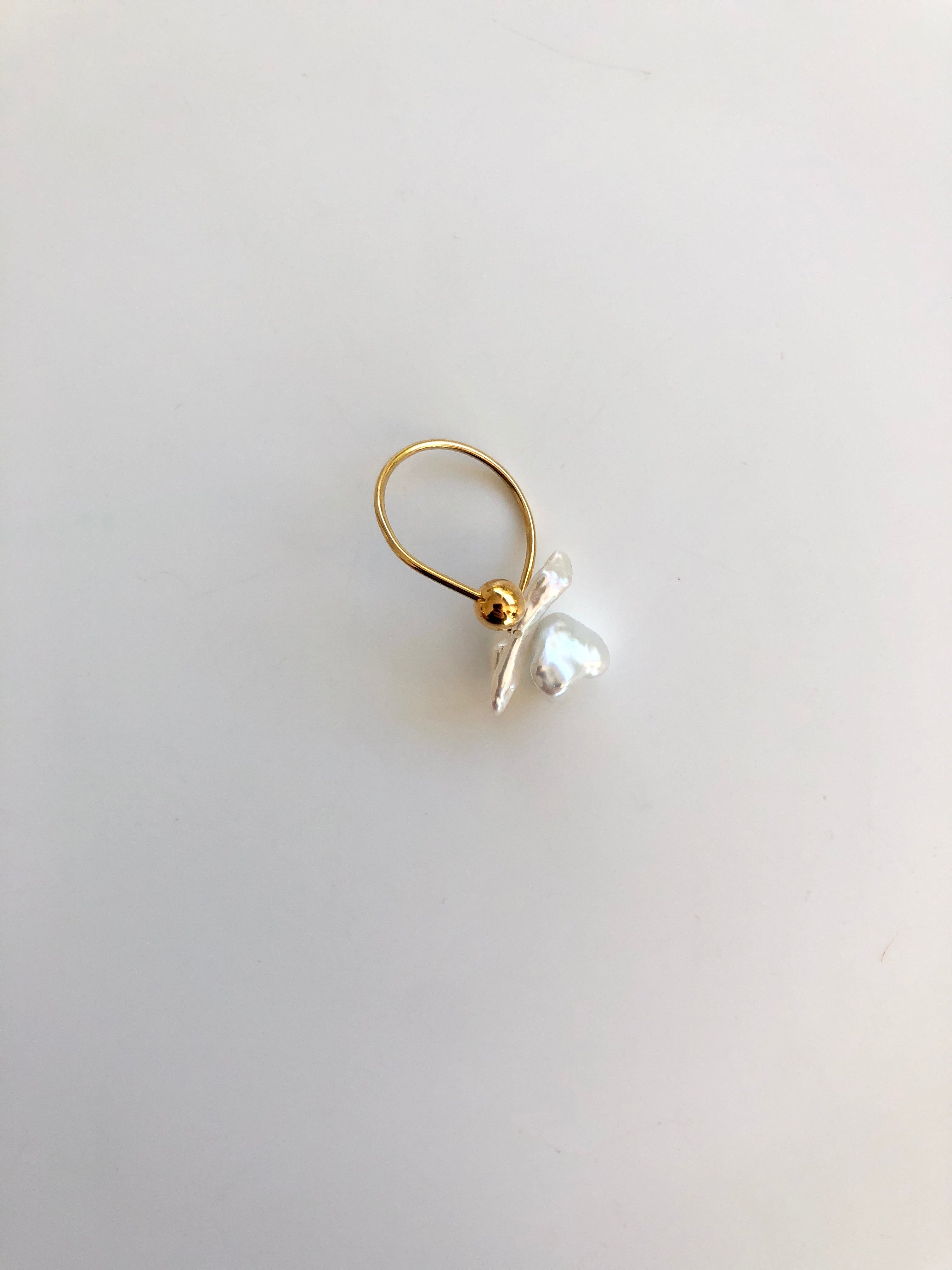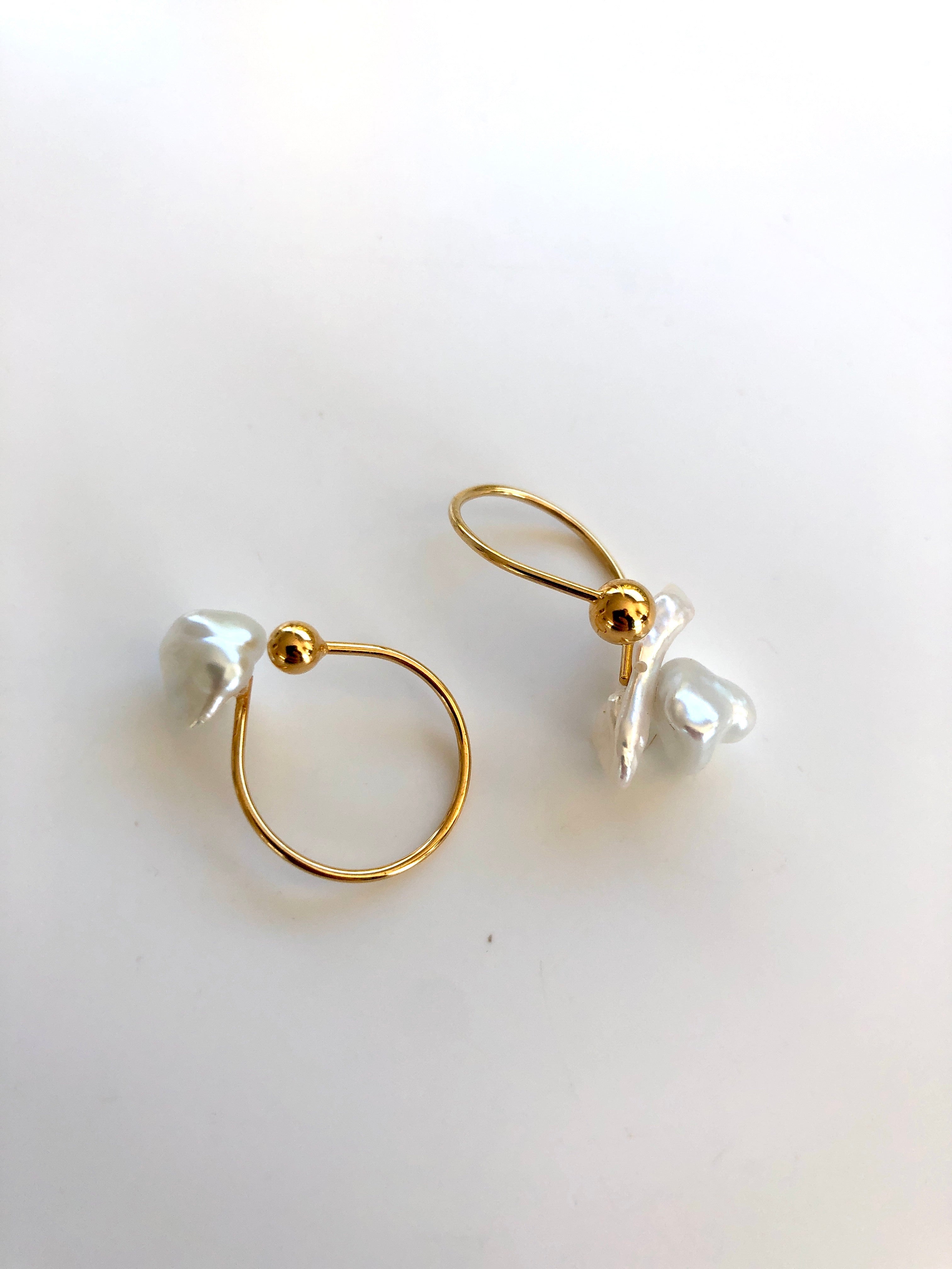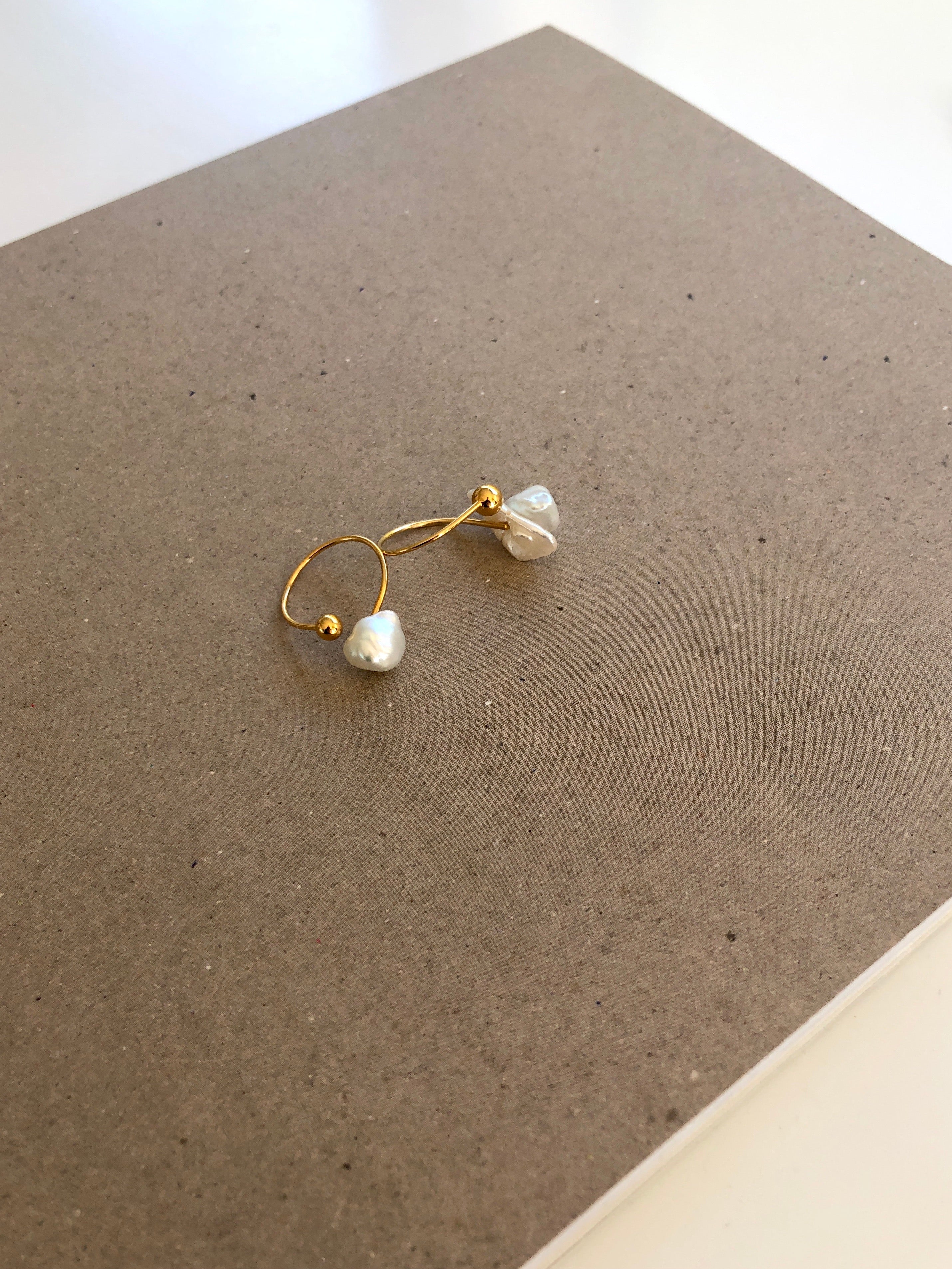 This unique Ring is designed with love for nordic minimalism with a feminine twist. The combination of Baroque pearls and a simply ball makes this ring one of a kind.