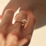 The Paulina Ring is designed with love for nordic minimalism with a feminine twist. The unique combination of a baroque pearl and a modern shape, makes this ring one of a kind.