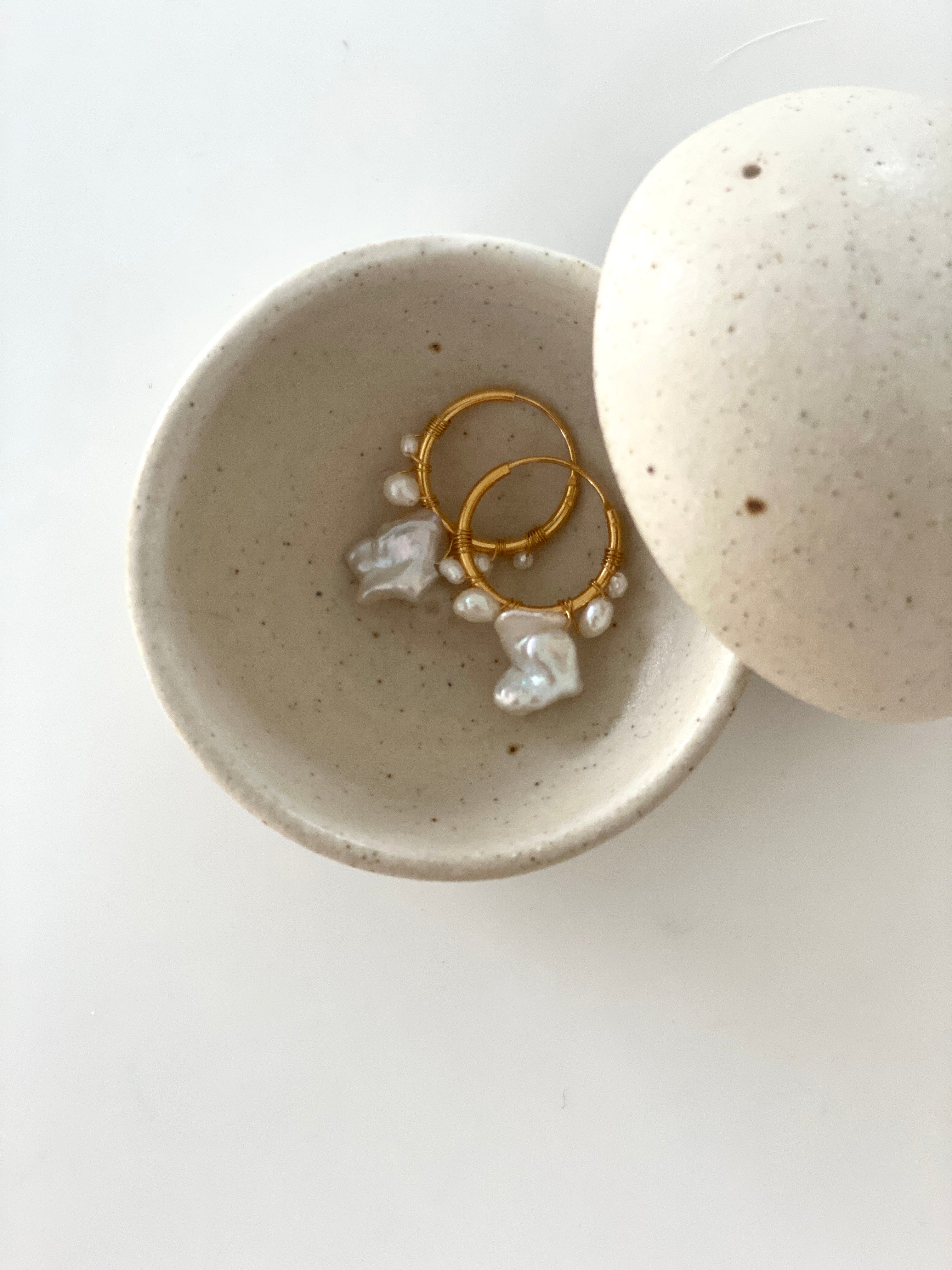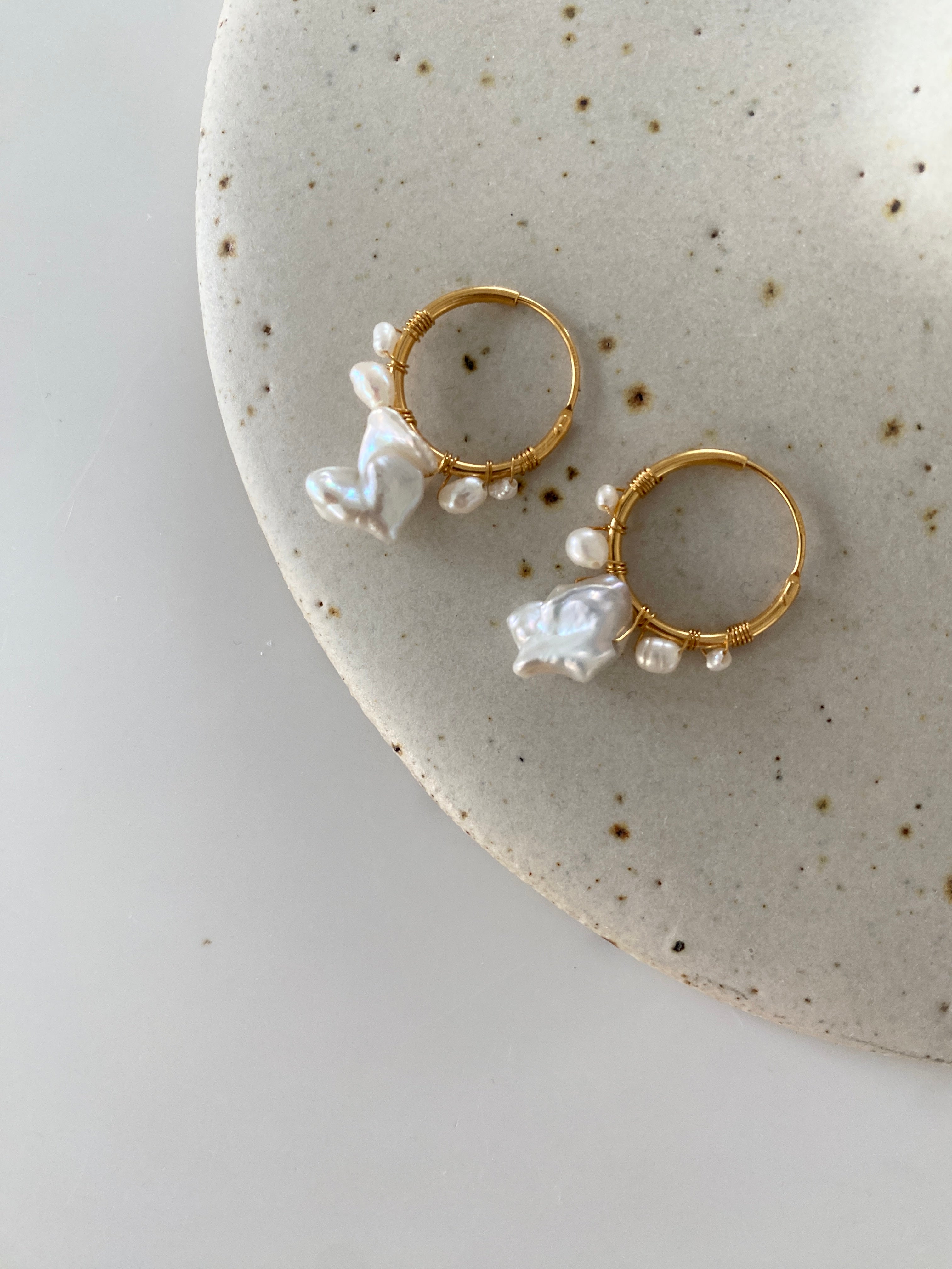 This unique pair of earrings are designed with love for uniqueness and baroque pearls.The combination of small baroque pearls and 1 big pearl, makes the perfect set of earrings for any occasions. A timeless jewelry set designed to make a lasting impression, with a powerful combination of delicate pearls for delicate beauty.