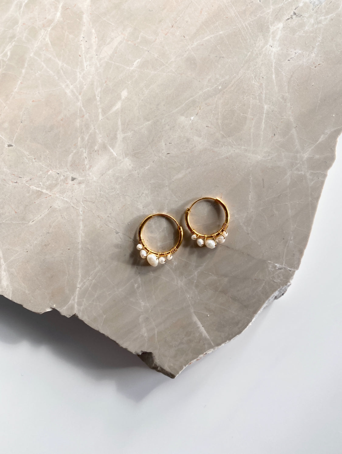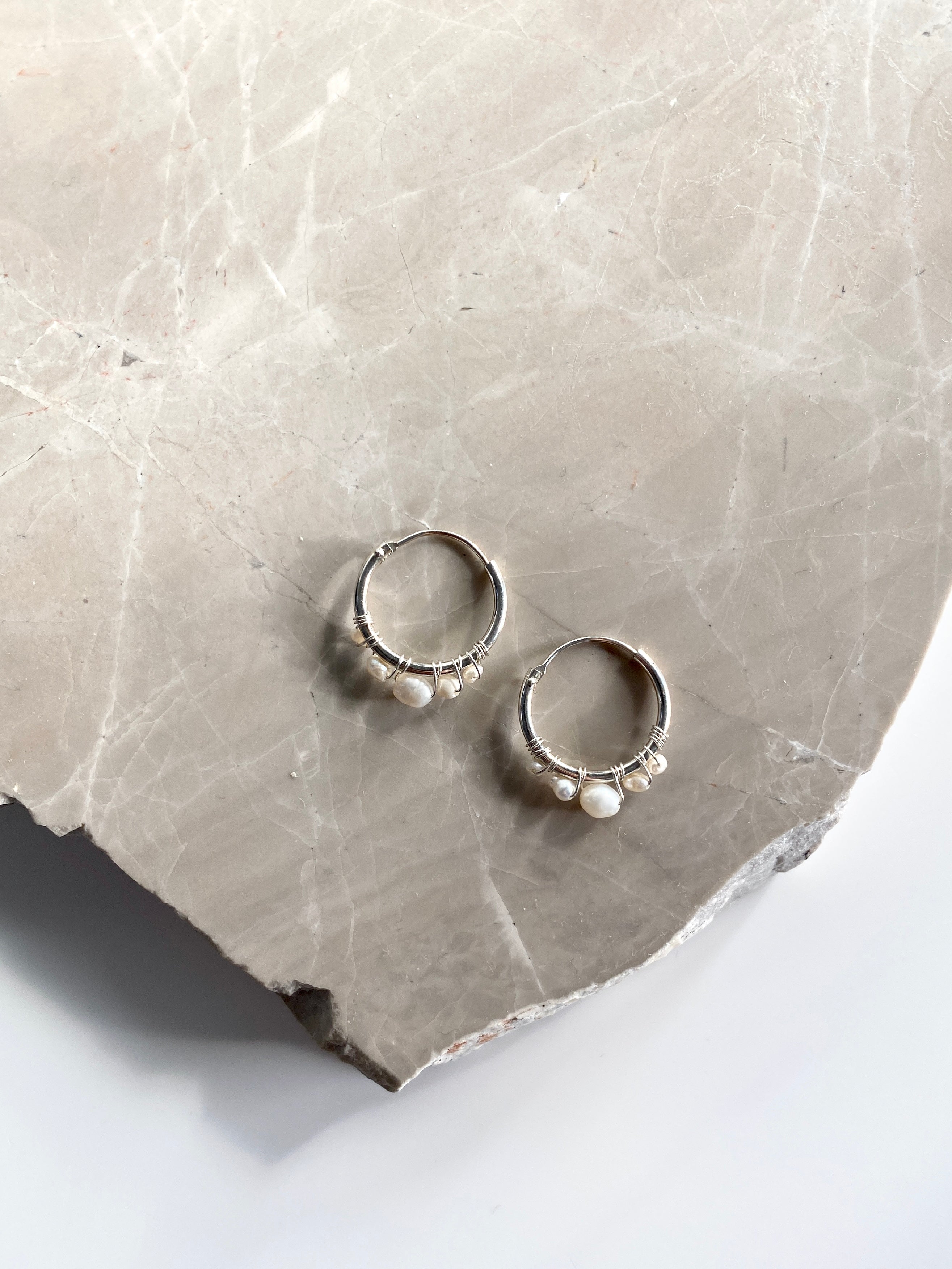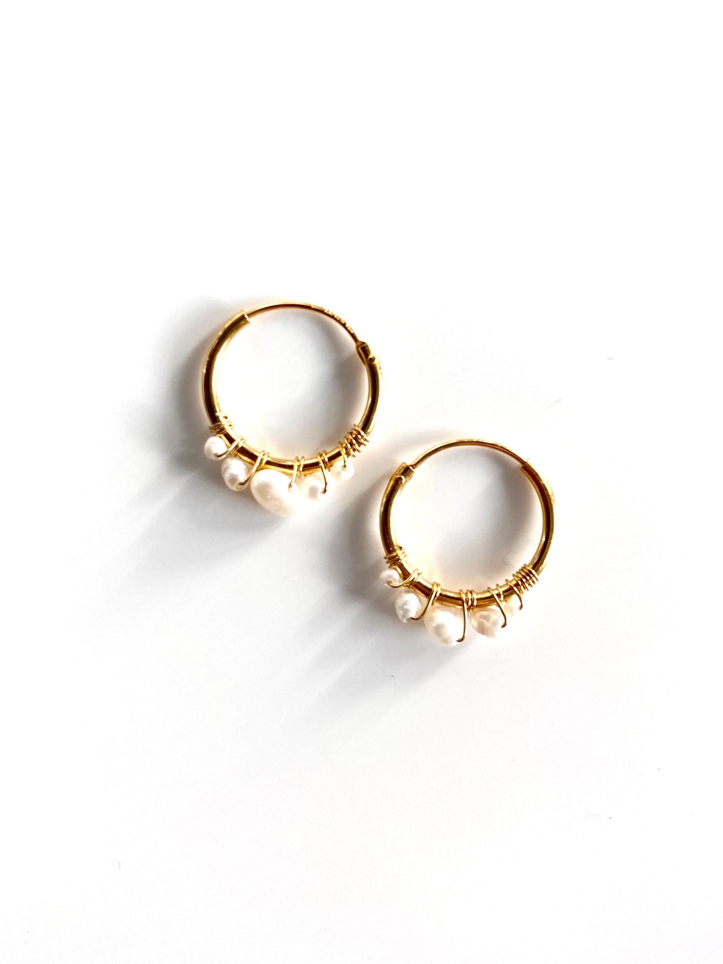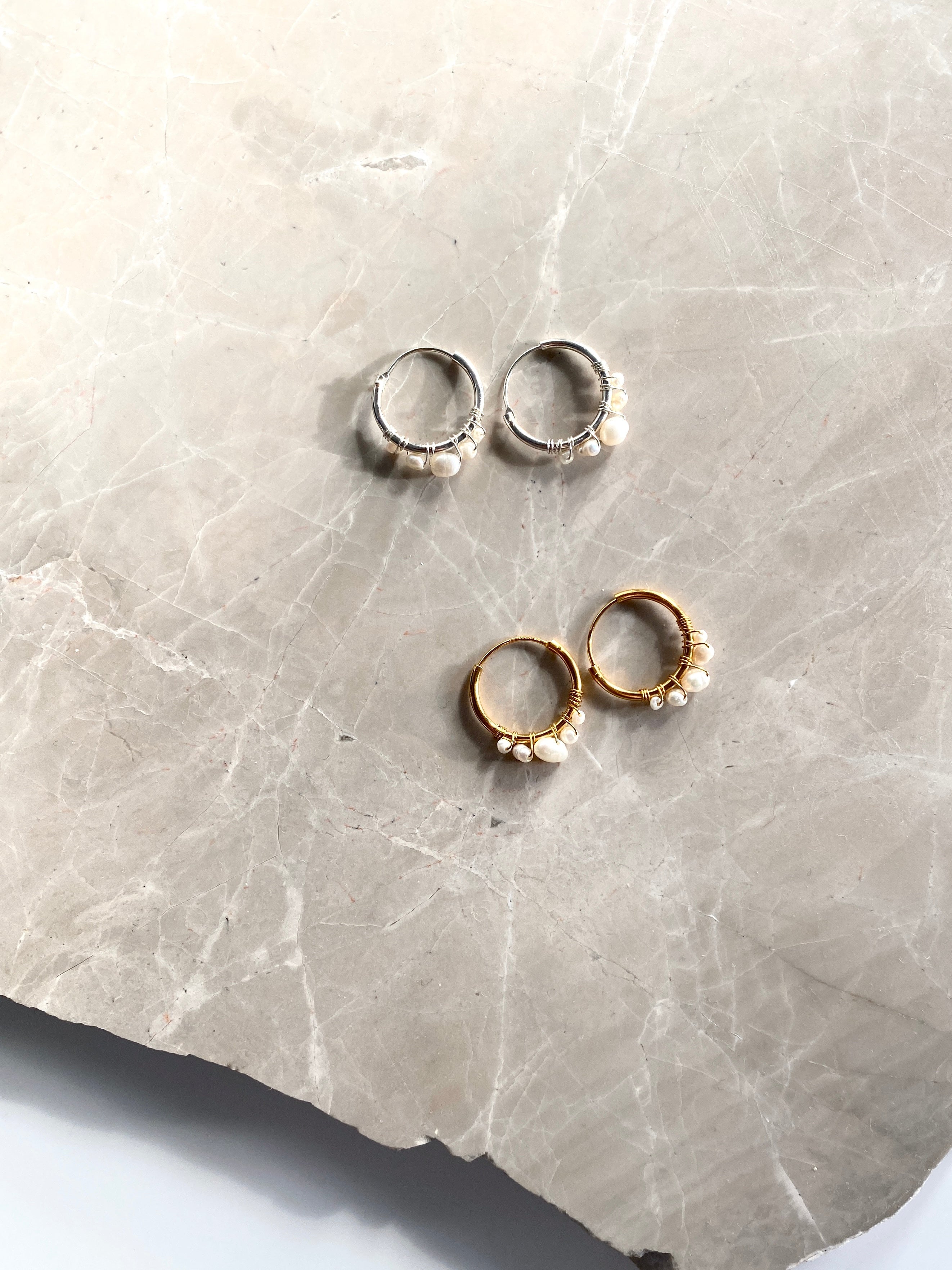 The combination of small baroque pearls and silver or gold hoop, makes the perfect set of earrings for any occasions.