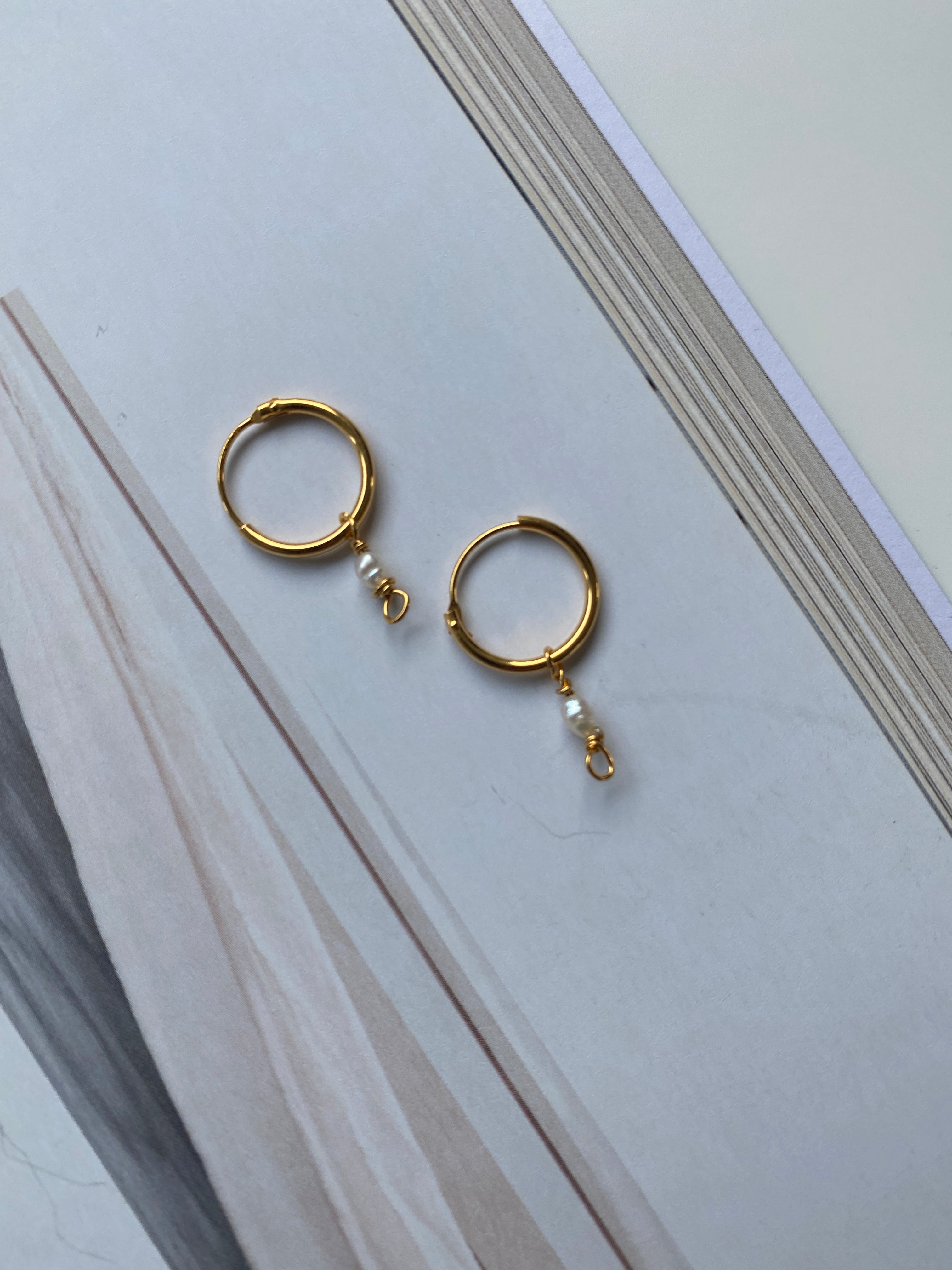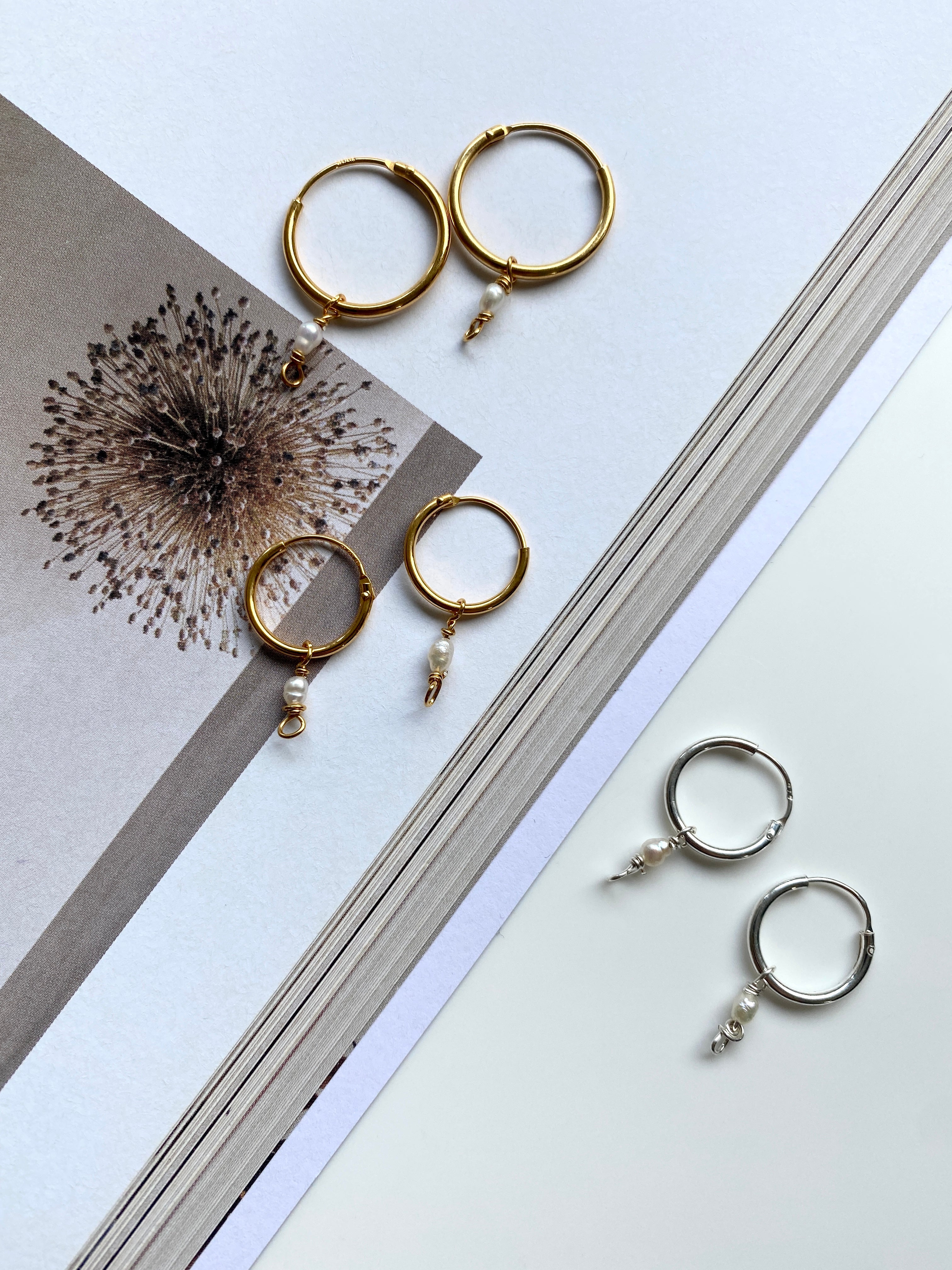 Classic hoop with a delicate small baroque pearl. A perfect every day style. Choose between 2 different sizes.