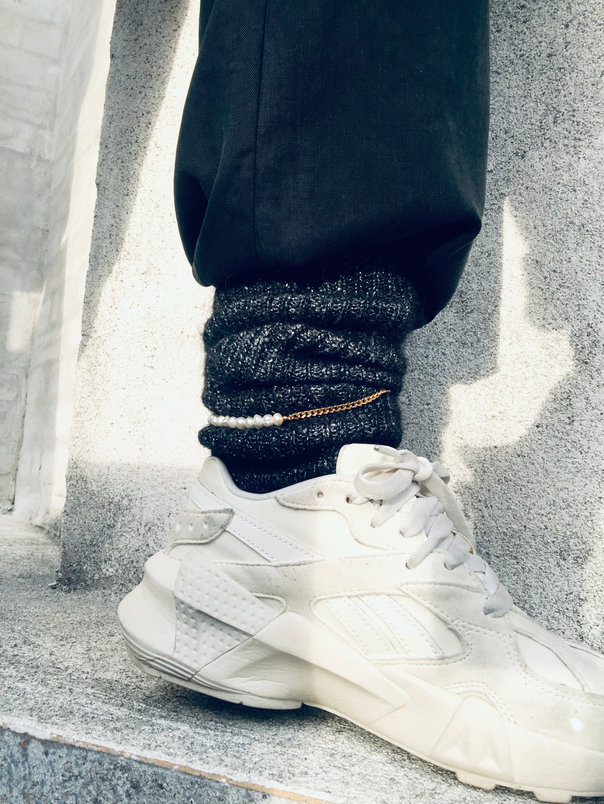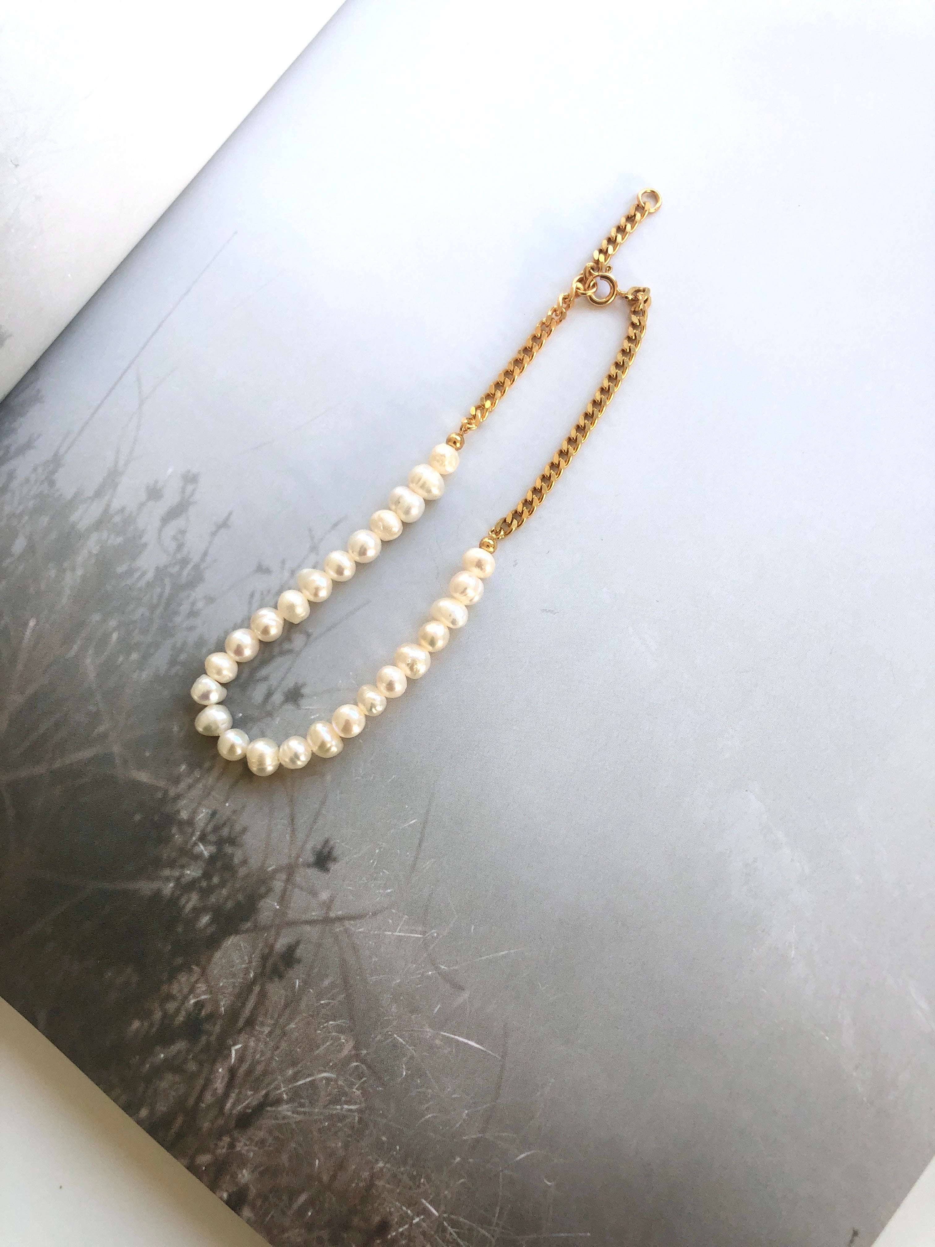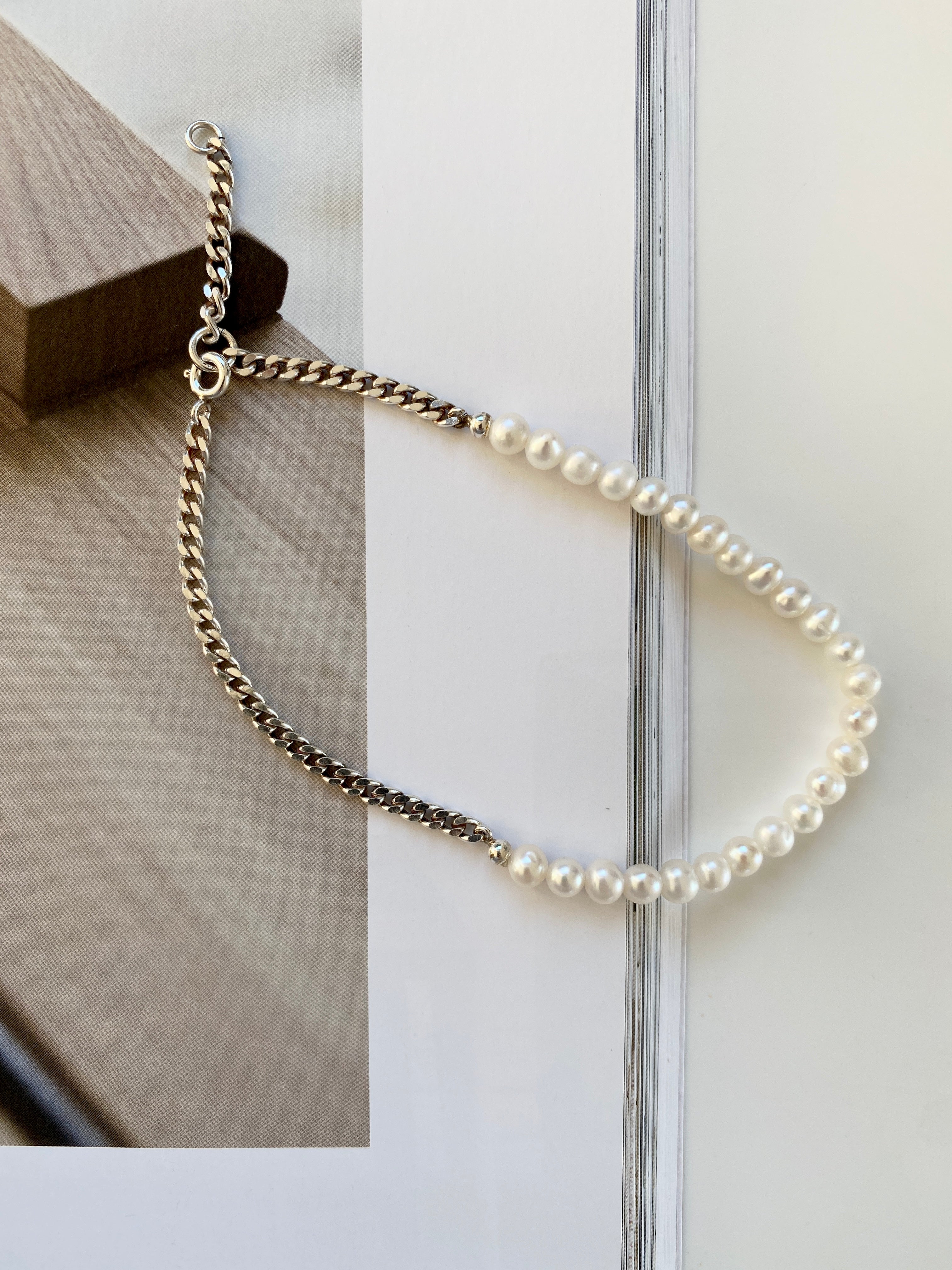 This unique anklet is a combination of classic baroque pearls and a modern 3 mm panzer chain - designed with love for a playful mind.