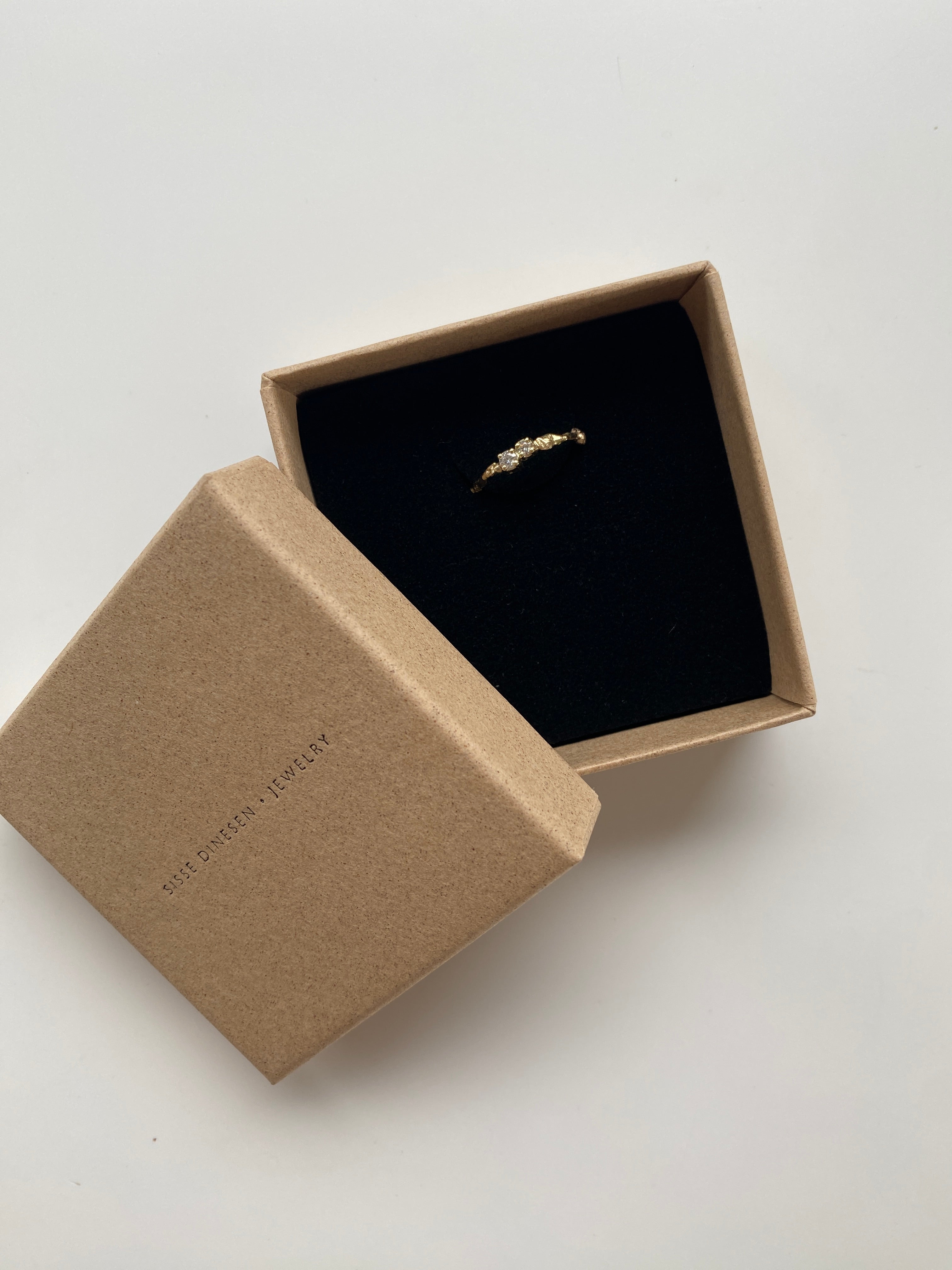 The Amalie Ring is made with love for a unique shapes. The design is made from small fragments of 14kt gold put into an unique shaped ring.