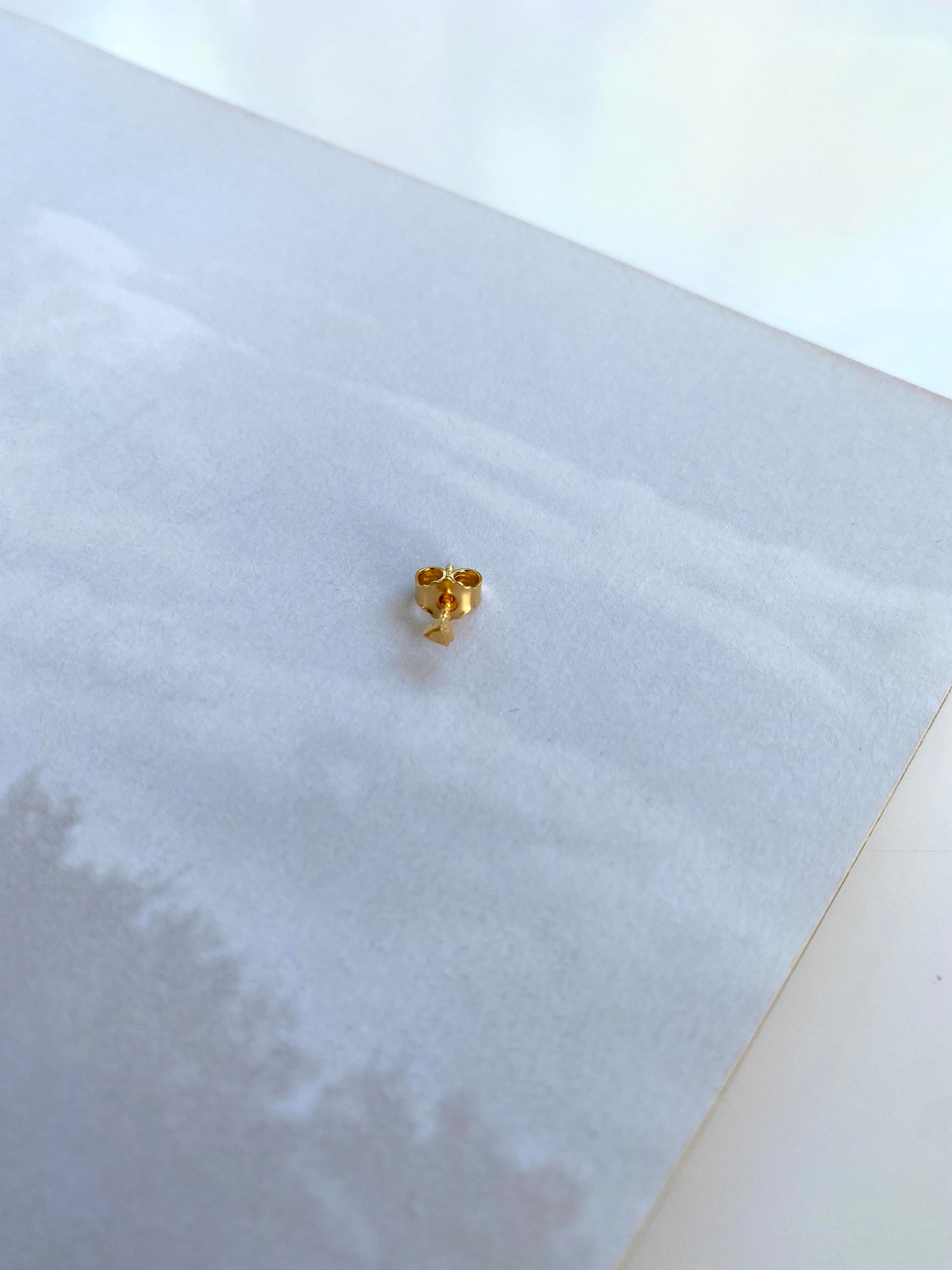 This elegant earring features a minimalist design with a 0.8mm hammered triangle set on a pin. Made from sterling silver or plated with 24kt gold (Vermeil gold), it combines simplicity and sophistication. Each piece is handcrafted in Denmark, ensuring unique quality and avoiding overproduction. Available for purchase as a single piece or a pair, these earrings are perfect for those who appreciate understated luxury.